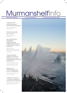 Murmanshelf Info МурманшельфИнфо www.murmanshelf.ru № 4 (9) December/декабрь 2009 Законодательная поддержка формирования и развития морской нефтегазовой отрасли в регионе Legislative support of formation and development of the offshore oil and gas industry in the region Стимулирование развития портового хозяйства на основе государственно-частного партнёрства Stimulating the development of port economy on the basis of state-private partnership I Мурманский международный экономический форум IMurmansk International Economic Forum Освоение шельфа: шаг за шагом Shelf development: STEP BY STEP Мурманский транспортный узел и его составляющие Murmansk transportation hub and its consistuents Создание кластеров – условие глобальной конкурентоспособности Creation of clusters - is a condition of global competitive ability