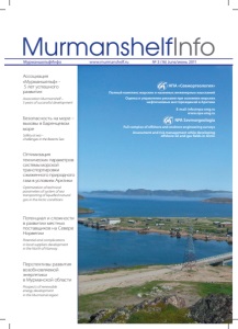 Murmanshelf Info МурманшельфИнфо www.murmanshelf.ru № 3 (16) June/июнь 2011 Ассоциация «Мурманшельф» - 5 лет успешного развития Association Murmanshelf – 5 years of successful development Потенциал и сложности в развитии местных поставщиков на Севере Норвегии Potential and complications in local suppliers development in the North of Norway Оптимизация технических параметров системы морской транспортировки сжиженного природного газа в условиях Арктики Optimization of technical parameters of system of sea transporting of liquefied natural gas in the Arctic conditions НПА «Севморгеология» Полный комплекс морских и наземных инженерных изысканий Оценка и управление рисками при освоении морских нефтегазовых месторождений в Арктике E-mail: info@npa-smg.ru www.npa-smg.ru NPA Sevmorgeologia Full complex of offshore and onshore engineering surveys Assessment and risk management while developing offshore oil and gas fields in Arctic Безопасность на море – вызовы в Баренцевом море Safety at sea – challenges in the Barents Sea Перспективы развития возобновляемой энергетики в Мурманской области Prospects of renewable energy development in the Murmansk region