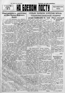 Из части не выносить Пролетарии всех стран, соединяйтесь! 9 И Ю Л Я 1940 Г. вторник № 22 Ml BDEBDMПОСТИ Краснофлотская газета Шире]; развернуть подготовку ко Дню Военно-Морского Флота Личный состав нашего соеди нения с большим под’емом гото вится достойно встретить празд ник трудящихся нашей родины— День Военно-Морского Флота ССОР. Развернулось во всю ширь со циалистическое, соревнование ме жду ібойцами, отделениями и ко раблями. Бойды горят желанием выйти победителями в втом со циалистическом соревновании. На каждом корабле развернулась борьба за комсомольское подраз деление. С развертыванием предпразд ничного социалистического сорев нования с каждым днем растет политический под'ем и актив ность краснофлотцев и команди ров. Проходящая подписка на Заем Третьей Пятилетки (выпуск 3 -го года) показала высокий па триотизм личного состава, любовь и преданность своей родине и великому Сталину. Вся подготовка ко Дню Военно- Морского Флота должна прохо дить под знаком дальнейшего укрепления боевой мощи кораб лей и частей нашего соединения. Борьбу за первенство в соедине нии не ослаблять, а развивать и ширить с каждым днем. Большую роль должны сыграть в помощи командованию организовать со циалистическое соревнование пар тийные и комсомольские органи зации кораблей и частей. Образцом подготовки ко Дню Военно-Морского Флота, в моби лизации личного состава на борьбу за первенство в соедине нии служит корабль, где военко мом т. Юрьев. Здесь своевремен но партийная и комсомольская организации , занялись этим во просом. Комсомольская организа ция составила конкретный план подготовки ко Дню Военно-Мор ского Флота, предусмотрев вое его детали. Поэтому плану вся комсомольская организация раз вернула широкую работу. Подго товка к инспекторским провер кам групп политзанятий, работа с шефами, подготовка художе ственной самодеятельности, физ культурная работа, проведение бесед о Дне Военно-Морского Флота — все эти отрасли работы поручены отдельным комсомоль цам. Сейчас точно по плану про водятся беседы, проходят занятия художественной самодеятельности. В социалистическом соревновании бойцы борются за комсомольское, подразделение. Однако не везде еще по-настоя щему развернута подготовка ко Дню Военно-Морского Флота. Пар тийные к комсомольские органи зации не развернули настоящей борьбы за первое место в соеди нении. Комсомольская организа ция в частя, где военкомом тоз. Новосельцев не борется за аван гардную роль комсомольцев в предпраздничном соревновании. Не все комсомольцы служат приме ром для беспартийной массы. За последнее время комсомольцы Беспритульный, Федормн, Голое- ченко и Цветков получили союз ное взыскание. 'Поэтому здесь до сего времени слабо разверты вается подготовка к празднику. При подведении итогов социа листического соревнования на первентсво в соединении в основ ном будет даваться оценка по боевой (готовности части, корабля. Одним из важнейших (элементов боевой учебы на корабле является служба корабельных нарядов. От того, как она организована и нала жена, во многом зависит способ ность корабля успешно решать задачи 1 боевой подготовки. На- днях была проведена проверка работниками штаба несения вах тенной и дежурной службы на кораблях соединения. Оказалось, что на некоторых кораблях не четко отработаны вопросы в