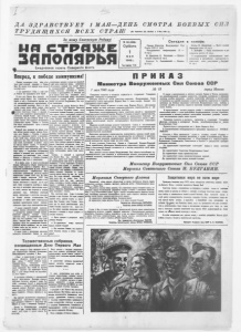 Д А З Д Р А В С Т В У Е Т 1 М А Я —Д Е Н Ь СМО Т Р А Б О Е В Ы Х СИЛ Т Р У Д Я Щ И Х С Я В С Е Х С Т Р АН ! (Из Призывов ЦК ВКП(б) к I М м 1948 г& За нашу Собетскую Родану! % Ежедневная газета Северного флота № 1 0 2 ( 3 0 9 8 ) . Суббо+а 1 м а я 1948 г. Гвх издали» 11 -й Сегодня Приказ Министра Вооруженных Сил Союза ССР (1 стр.). Поздравления североморцам (1 — 2 стр.). Н. Драгунов, С. Рахманин. — Колхоз четырех героев (2 стр.). К а п и т а н 3 . Соколинский. — М а е в к а (2 стр.). номере: М ай о р Н. Дементьев. — В а х т у правит С еверны й ф л о т (3 стр .). . Г. Деборин . — Силы с о ц и а л и зм а и д*н м окр атии р а с т у т (3 с т р . ) . , О н еп р авильном и сп о л ь зо в ан и и ~ а м е ­ ри к ан ски х и ан глий ски х - а э р о д р о м о в в со в етской зон е i о к к у п ац и и * А в с тр и я (4 стр .). Вперед, к победе коммунизма! П Р К А 3 А г о г Ипл< Сегодня трудящиеся всего мира отме­ чают свой ведший праздник — Первое Мая. На языках всех народов мира звучит могучий клич: — Да здравствует 1 Мая — день смот­ ра боевых сил трудящихся всех стран! В этом году Первое Мая проходит под знакам смотра боевых сил демократки в борьбе за мир и безопасность народов про­ тив активизировавшегося империализма и его агрессивной политики. Борясь за мир, против угрозы новой войны, народы мира обращают свои взоры к нашей Родине — учему Советскому Союзу — надежде и плоту всего передового прогрессивного че­ ловечества. Нашей Родине дано историей осуществить на деле вековые мечты о на­ родам счастье. Под мудрым и испытанным руководлвам партии Ленина — Сталина наш народ прокладывает пути к светлой эре коммунизма. . Каждый день приносит все новые и но­ вые победы нашему народу, нашему Отече­ ству, делу Ленина — Сталина. С каждым днем мы становимся крепче и закаленнее, н нет такой силы, которая могла бы про- тавостоять нам. Наш советский обществен­ ный строй, сплотивший в единую семью все юроды нашей страны, — непобедим. Наша великая большевистская партия — закаленный в баях передовой отряд совет­ ского ва)рода — окруженная безграничной любовью н доверием всех трудящихся, — непобедима, как непобедимо само учение Маркез — Энгельса ——Ленина—Сталина, сваряюдае ваш путь к коммунизму. • В то время, когда в каппталгстнчесстх страна:: наблюдается упадок производства, ьквмг itogosa правила е Первому Мая с огромными достижениями на всех участках соцнахгстнчесвого строительства. • Про­ мышленное производство достигло средне- квартатьного уровня 1940 года. По срав­ нению с первым кварталом 1947 года реальная заработная плата рабочих а слу­ жащих повысилась в среднем на 51 про­ дето. Наше государство получило в прош­ лом году от колхозного крестьянства столь­ ко хлеба, сколько оно получало в лучшие довоенше годы. Работники советской науки, литературы и искусства прослави­ ли Родину новыми достижениями. Эти достижения — новое яркое свидетельство сгрозгаого превосходства нашего социали­ стического строя перед капиталистическим. С 1 ьюоко поднятой головой, преиспол­ ненные чувства собственного достоинства — достоинства граждан великой социали­ стической державы, выходят сегодня советские люди на первомайский смотр. Нан есть чем гордиться, есть чему радо­ ваться. Каждый день созидательного все­ народного труда под руководством больше­ вистской партии поднимает нас все выше и выше, ведет нас все дальше и дальше по пути в коммунизму. В одном строю с миллион