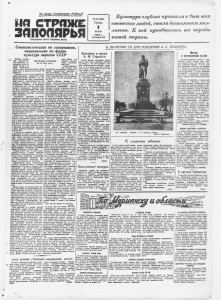 За нашу} Советскую Родину! на СТРАЖЕ ЗАПОЛЯРЬЯ Ежедневная газета Северного флота № 127 (3432). Среда, 1 И Ю Н Я 1949 г. Гея издания 12-й 1 Культура глубоко проникла в быт всех советских людей, стала достоянием мил­ лионов. К ней приобщились все народы нагаей страны. Социалистическая по содержанию, национальная по форме культура народов СССР Велгаая Октябрь­ ская социалистиче­ ская решолюдия оз­ наменовала собой ко­ ренной перелом в ис­ тории человечеспя. П ЕРЕД О ВА Я «П РА ВД Ы » ЗА 31 М А Я 1949 г. К 150-ЛЕТИЮ СО ДНЯ РОЖДЕНИЯ А. С. ПУШКИНА Выставка в музее А. М. Горького чами рабочих, кол­ хозников н интелли­ гентов Нахичеван­ ской АССР. ■ Л П У Г Е Е : туры А- М- Г(>рЬЕ0Г0 011 Р^е-1я-ют «аержа- «Гигант Пушкин, величайшая гордость наша и самое полное выражение духовных сил России...». Эти* слова великого писа­ теля, основоположника советской литера- Октябрь нанес капиталистической системе листпческой по содержанию культуры ма- нив выставки, открывшейся 27 мая в Мо- такую рану, от когорой она не может уже ленькой Нахичеванской республики — CKEJ? 3 муэе0 Аорьш^* оправиться. один из множества примеров то:о, как Выставка, на которой сооралы цепные Доказаны на деле не только великие все- культурная революция проникла во все мирно-исторические преимущества социа- уголки советской земли, как преобразона- листической системы хозяйства, не зна- ла она жизнь всех без исключения наро- ющей противоречий между производитель- дов СССР. ными силами и производственными ошо - 1 Недавно в Москве с большим успехом шениями, и свободной, в силу этого, от прошла декада казахской литературы. С экономических кризисов, от безработицы,! любовью и гордостью слушали москвичи от обнищания масс и прочих неизлечимых замечательные произведения казахских болезней капитализма, доказано также, прозаиков и поэтов, радовались мастерству что только социалистический строй может | казахских артистов, видя во всем этом яр- обеспечэть подлинный расцвет культуры,. кое свидетельство высокой культуры брат- можег приобщить к культуре миллионные массы трудящихся. Величайшая, небывалая в истории культурная революция осуществлена в на­ шей стране. Одна из самых важных осо­ бенностей этой культурной революции за­ ключается в том, что она глубоко проник­ ла во tee, даже самые отдаленные уголки нашей необъятной Родины, в корне измегала культурный облик всех народов СССР, в том числе тех народов, которые до Октябрь­ ской революции находились в состоянии крайней отсталости. История не знала доселе примера столь быстрого, столь стремительного движения народов от отсталости к прогрессу, от тем­ ноты и невежества к высокой и всесторон­ ней культуре. Это движение стало возмож­ ным лишь в результате того, что оно было осуществлено на основе советской власти, В результате последовательного проведения й жизнь ленинско-сталинской националь­ ной политики. • В только что вышедшем десятом томе ского казахского народа. А что представлял собой Казахстан до советской власти? Стра­ ну пустынь и кочевий, страну, где населе­ ние было почти сплошь неграмотным! Ны- материалы из истории русской литерату­ ры, дает представление о творчестве А. С. Пушкина в воспринятая А. М. Горь­ кого. Она показывает, как близка была Горькому горячая вера Пушкина в русско­ го челозека, в великое будущее России. Сказки и поэмы Пушкина с самых ранних 