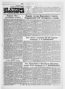 I О Б я 3 A T E J1 Ь >чЫ Й Э К 3 Е М П Л Я i / *?/■** \ 0 За нашу Советскую Род.иЩ& СТРАЖЕ я п о л я р ь я Газета С е в е р н о г о флота I а Патриотический долг воинов - североморцев — ознаменовать международный праздник Первое Мая новыми успехами в боевой и политической подго­ товке, в дальнейшем повышении боевой готовности кораблей и частей. Первому Мая — достойную встречу Приближается большой и радостный праздник трудящихся всего мира — Пер­ вое Мая. В обстановке огромного полити­ ческого и трудового под’ема. вызванного решениями январского Пленума ЦК КПСС и второй сессии Верховного Совета СССР, встречают народы нашей страны гграз-д* ник весны и счастья. На необ’ятных просторах социалисти­ ческой Родины советские люди охвачены пафосом созидания. В стране все более широкий размах приобретает соревнова­ ние за достойную встречу первомайского праздника, за досрочное выполнение пя­ того пятилетнего плана. Нельзя без чувства гордости читать, например. сообщение о том. что горняки шахт, комбината «Ростовуголь» в Дон­ бассе, N5 3— 3-бис в Кузбассе, имени Калинина в Караганде, нефтяники про­ мыслового управления «Октябрьскнефть» а Башкирской ССР досрочно выполнили программу первого квартала. Металлурги завода «Днепроопецсталь» в текущем го­ ду ухе выдали свефх плана несколько тысяч тонн стали и проката. Около мил­ лиона метров полушелковых и хлопчато­ бумажных тканей выработали в этом году сверх программы текстильщики комбина­ та «Трехгорная мануфактура». Колхозное крестьянство. работники МТС и совхозов активно включились в борьбу за образцовую подготовку к ве­ сеннему севу, за повышение урожайности сельскохозяйственных культур на всех площадях, эа расширение посевов куку­ рузы. эа повышение продуктивности и рост поголовья общественного животно­ водства. Все это — яркое свидетельство того, что вое народы социалистической Отчиз­ ны горячо и единодушно одобряют поли­ тику партии, направленную на дальней­ шее развитие народного хозяйства, и прежде всего тяжелой индустрии, со­ ставляющей прочную основу социалисти­ ческой экономики и несокрушимой оборо­ носпособности нашей Родины, надежный источник неуклонного роста материально­ го благосостояния трудящихся. Военные моряки Северного флота с чувством патриотической гордости встре­ чают важное сообщение об успехах, до­ стигнутых нашей страной в социалисти­ ческом строительстве. Эти успехи вдох­ новляют :нтчный состгр флота. *па борьбу за дальнейшее повышение боевой готовно­ сть кораблей и частей. Об этом свиде­ тельствуют многочисленные факты. Среди офицерского состава увеличилось числ« командиров, ставших подлинными масте­ рами обучения, политического и воинско­ го воспитания подчиненных. На кораблях и в частях флота растут ряды отлични­ ков и специалистов высокого класса. Все больше становится боевых постов, отделе­ ний и подразделений, в которых все старшины и матросы являются отлични­ ками и классными специалистами. Значи­ тельных успехов в учебе добился личный состав корабля, на котором слу­ жит капитан-лейтенант Титов. В недав­ нем походе моряки этого корабля прояви­ ли высокое мастерство, мужество, стой­ кость и выносливость. Новыми показате­ лями в боевой учебе и службе встречают всенародный праздник артиллеристы — ееряоанты Ткачук. Бычков, старшие ма­ тросы Шейдер