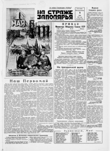 •, 'ч v* г т «"* ( х *"■ ' } Л. * I ; Л ! j v i *;•? i-*> К ■L ■ X З а нашу Советскую Родину! СТРАЖЕ ЗАПОЛЯРЬЯ С е в е р н о г о флота Кг 103 (5255). Воскресенье, 1 мая 1955 года. I Гоа издания 19-й. Наш Первотчай Море алых знамен и стягов реет сегод­ ня над необ’ятнымн просторами нашей любимой Родины. Во всех городах, рабо­ чих поселках и сельских местностях мил­ лионы советских людей, празднично оде­ тые, вышли на улицы, чтобы торжествен­ но отметить день Первого Мая — празд­ ник весны и труда, веселья и радости, праздник народного счастья. От Москвы до самых до окраин звучит в этот день традиционный припев: Кипучая, могучая, Никем непобедимая... В нынешнем году все трудящиеся страны победившего социализма, охва-' ченные пафосом мирного созидания, встре­ чают свой Первоман в обстановке высокой творческой активности, усиления всена­ родной борьбы за досрочное завершение пятого пятилетнего плана, за выполне­ ние исторических решений январского Пленума ЦК КПСС. В первомайских при­ зывах, плакатах и транспарантах отра­ жены героика будней советского народа, величие наших побед. Многие фабрики, заводы, шахты и рудники уже выполнили задание пятилетки и дают сверхплановую продукцию, умножая богатство и мощь Советского государства. На своем многолетнем опыте советские люди убедились в том, что забота о благе народа, его процветании является выс­ шей целью всей деятельности Коммуни­ стической партии. Неустанно беспокоясь о том, чтобы рабочим, колхозникам, интел­ лигенции — всем советским людям жи­ лось лучше и лучше, наша партия после­ довательно проводит линию на всемерное развитие тяжелой промышленности, яв­ ляющейся прочной основой всего народно­ го хозяйства, несокрушимой обороно­ способности нашей Родины, источником неуклонного роста благосостояния наро­ да. Уже в прошлом году валовая продукция крупной промышленности превысила уро­ вень 1913 года в 35 раз. Каждый совет­ ский человек законно гордится тем, что за этот небольшой исторический срок производство средств производства воз­ росло у нас почти в 60 раз, выработка электроэнергии увеличилась более чем в 75 раз, а продукция машиностроения — более чем в 160 раз. Воодушевленные решениями январского Пленума ЦК КПСС, получившими всена­ родное одобрение, с величайшим энтузиаз­ мом трудятся колхозники, работники сов­ хозов и машинно-тракторных станций. Нынешней весной, как никогда, организо­ ванно и дружно, е высокими темпами проходит весенний сев. К 1 апреля за­ вершили сев ранних колосовых культур хлеборобы Дона. Колхозы и совхозы У к ­ раины выполнили план посева подсол­ нечника п начали сев кукурузы. Успешно справились с посевными работами хлопко­ робы долины Мургаба. В полном разгаре весенне-полевые работы на целинных землях. В этих примерах и фактах наглядное свидетельство твердой решимости труже­ ников социалистического земледелия, все­ го советского народа с честью выполнить решения январского Пленума ЦК КПСС и довести к 1960 году ежегодное производ­ ство зерна не менее чем 10 миллиардов пудов, увеличить производство основных продуктов животноводства в два-два с лишним раза. Сегодня на первомайской демонстрации трудящиеся нашей страны снова и снова покажут свою силу, радость свободной и счастливой жизни, неиссякаемую любовь к социалистической Отчизне, тесную сплоченность вокруг^ мудрой и закален­