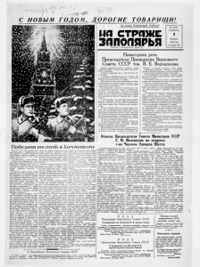 ч с н о в ы м Г-51? ' W 1/ Д О Р О Г И Е Т О В А Р И Щ И ! За нашу Советскую Родину! ИЯ СТРАЖЕ ЗАПОЛЯРЬЯ Новогодняя речь Председателя Президиума Верховного Совета СССР тов. К. Е. Ворошилова Д о р о г и е т о в а р и щ и ! Д о р о г и е г р а ж д а н е н аш е й л ю б и м о й Р о д и н ы — С о ю з а С о в е т с к и х С о ц и а л и с т и ­ ч е с к и х Р е с п у б л и к ! С е р д е ч н о п о з д р а в л я ю В а с с н а с т у п а ю щ и м Н о ­ вы м го д ом ! С ч у в с т в о м г л у б о к о й р а д о с т и мы о т м е ч а е м , ч то з а и с т е кш и й г о д у с и л и я м и с о в е т с к и х л ю д е й н аш а Р о д и н а с т а л а ещ е б о г а ч е , ещ е с и л ь н е е . М и н у вш и й г о д б ы л г о д о м д а л ь н е й ш е г о р а з в и т и я с о ц и а л и с т и ч е с к о й п р о м ы ш л е н н о с т и , . п о д ’е м а с е л ь ­ с к о г о х о з я й с т в а и р а с ц в е т а н а у к и и к у л ь т у р ы н аш е й м н о г о н а ц и о н а л ь н о й Р о д и н ы . Э ти д о с т и ж е н и я — р е з у л ь т а т с о з и д а т е л ь н о г о т р у ­ д а г е р о и ч е с к о г о с о в е т с к о г о н а р о д а — р а б о ч и х , к о л ­ х о з н и к о в и и н т е л л и г е н ц и и . Э т о о н и , н е у т о м и м ы е с т р о и т е л и к о м м у н и с т и ч е с к о г о о б щ е с т в а и с л а в н ы е б о р ц ы з а м и р и с ч а с т ь е л ю д е й , р у к о в о д и м ы е с в о ей К о м м у н и с т и ч е с к о й п а р т и е й , у в е р е н н о и д у т к н о вы м п о б е д а м . В н а с т у п аю щ е м г о д у с о в е т с к и й н а р о д , в д о х н о ­ в л я е м ы й в е л и к и м и и д е я м и М а р к с а— Э н г е л ь с а— Л е н и н а— С т а л и н а , б у д е т т р у д и т ь с я с б о л ьш е й э н е р ­ ги ей , ч т о бы с д е л а т ь н аш е О т е ч е с т в о ещ е м о г ущ е с т ­ в ен н е е . В с т у п а я в Н о в ы й , 1955 го д , г о р д ы е с в о и м и у с п е ­ х а м и , мы с у д о в л е т в о р е н и е м о т м е ч а е м т а к ж е , ч т о в р е з у л ь т а т е н а с т о й ч и в ы х у с и л и й С о в е т с к о г о С о ю з а , К и т а й с к о й Н а р о д н о й Р е с п у б л и к и и в с е х м и р о л ю б и ­ вы х н а р о д о в в м и н у вш е м г о д у п р о и з о ш л а н е к о т о р а я р а з р я д к а м е ж д у н а р о д н о й н а п р я ж е н н о с т и . Б о р ь б а з а п р о ч н ы й и д л и т е л ь н ы й м и р п р и н е с л а св о и п л о д ы . Н о э т о н е у с т р а и в а е т в р а г о в м и р а . Н е с ч и т а я с ь с в о л е й с в о и х н а р о д о в и з а б ы в у р о ­ ки и с т о р и и , п р а в я щ и е к р у ги н е к о т о р ы х з а п а д н ы х д е р ж а в п р о д о л ж а ю т в е с ти а г р е с с и в н у ю п о л и т и к у , ч р е в а т у ю о п а с н ы м и п о с л е д с т в и я м и . М и р о лю б и в ы е н а р о д ы н е м о г у т п р о й ти м и м о т о ­ го ф а к т а , ч то з а п а д н ы е д е р ж а в ы , в о з р о ж д а я в ц е н т ­ р е Е в р о п ы г е р м а н с к и й м и л и т а р и з м , о с л о ж н я ю т о б ­ с т а н о в к у и у с и л и в а ю т о п а с н о с т ь н о в о й в о й н ы . У в а ж а е м ы е г р а ж д а н е , м у ж ч и н ы и ж е н щ и н ы , ю н ош и и д е в у ш к и з а р у б е ж н ы х с т р а н ! И с т е кш и й г о д к с ч а с т ью в с е г о ч е л о в е ч е с т в а б ы л г о д о м м и р а . Я н е с о м н е в а ю с ь , ч т о п р о с ты е , ч е с т н ы е л ю д и в с е х с т р а н н е х о т я т в о й н ы , он и х о т я т ж и т ь в м и р е и б р а т с к о м с о г л а с и и . П р о т и в н и к а м м и р а н е у д а с т с я о с у щ е с т в и т ь и х п л а н ы , е с л и н а р о д ы в о з ь м у т д е л о м и р а в с в о и р у к и и б у д у т е г о о т с т а и в а т ь д о к о н ц а . С о в е т с к и й н а р о д в б р а т с к о м е д и н е н и и с в е л и к и м к и т а й с к и м н а р о д о м и в с ем и н а р о д а м и д е м о к р а т и ч е ­ с к и х с т р а н в е р я т , ч т о и н а с т у п аю щ и й Н о в ы й г о д б у ­ д е т г о д о м д а л ь н е й ш е г о у п р о ч е н и я м и р а в о в с ем м и р е . Н а н е д а в н е м М о с 