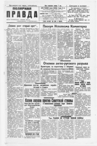 Пролетарий всех стран , соединяйтесь .» Цсва дидеяыюго «онера 7 кои. ПОЛЯРНАЯ пвдд ОРГАН МУРМАНСКОГО ГУБКОМА ВКП (б) ГУБИСПОЛКОМА И ГУБПРОФСОВЕТА . 1ДРЕС РЕДАКЦИИ площадь СВОБОДЫ. Телефон Ж 26. Прием ежедневно: о т 10 ч. утра до б ч. дня. Редакция оставляет за собой право сокращать и изменять рукописи, обратно рукописи не возвращаются. ЛПППИ ГПД б ПЛАТА* я& ° и н мес. по воял. подписке...............7Б коп. ииДЦДЬпАа l l J l A i A . , . п о юцявид. подписке . . . 90 *оп. Цена за об'явления в газ. «Полярная Правда>. По спросу и предлож. труд! Объявления об утере одногодох. 1 р« Стр. нонпарели пов&дн текста. I p . I а Ьо к, • . впер, и ср. тх. 1 р. 50 в. | ЧЕТВЕРГ, 2 июня 1927 г. № 66 Газета выходи тра раза в неделю. Сегодня в номере: З а к р а с н ы м р тб а зеом Движение против английскихпоработителей в Египте.-Спрос на советские товары в Англии.— Чжан-Цзо Лин организует белогвардейские банды. По ССОР Тов. Рыков обугрозе новой войны.— Первый розыгрыш10 проц. займа.— Расстрел шпиона. В Мурманске Как будет построен Мурманский округ— От четы лавочных комиссий. Славно роет старый крот4'... Вести о разрыве между двумя крупнейшими государствами — Ан- ^ глией и СССР разнеслись по всему миру. Сейчас на другой день после разрыва будет полезно бросить об‘- ективный взгляд на международное положение. Кому принес пользу разрыв. У ко го дела хуже. Трудящимся Совет ской страны ^приходится унывать меньше всего. У нас дела куда лучше, чем у ясновельможных милордов. Кого разрыв ударил рублем? Ан глию. Свои заказы мы сумеем раз местить в других странах и на соб ственных заводах. А для Англии эти заказы безнадежно потеряны. При нынешнем состоянии на рынках сбыта потерять советские за казы—это непоправимый удар для английского хозяйства. Это уже оплакивают английские фирмы, которым приходится терпеть убытки из-за подвигов мистера Хикса. Как смотрят на разрыв другие го• сударства? B j время пребывания в Париже тов. Чмчермна, Франция недвусмысленно сказала, что поддерживать Англию ради пре красных глаз мистера Хикса она небудети отношений с СССР не изменит. Это первый кукиш. Следующий —заявление Японии, в котором она издевается над выход кой английского правительства и еще больше обещаетукреплять друж бу с СССР. На такой же позиции стоит Германия, не только отка завшаяся от участия в авантюрах Чемберлена, но даже согласив шаяся взять на себя защиту интересов советских граждан в Англии. Наконец, даже Польша, на ^которую Англия ставила свою главную -ставку в борьбе с СССР, вовсе отказывается ссориться с СССР из эа пропажи фантастиче ского документа. Надежда твердоло бых на то, что разрыв найдет последо- « ватёлей в других государствах, по терпела пока что полное фиаско. Го сподин Чемберлен остался у разби того корыта.^ . В самой Англии рабочий масс весьма отрицательно относится к за теям господ твердолобых. Воевать с советскими рабочими англий ские пролетарии не хотят. А вот если дать им оружие, то у себя на родине они могут многое проделать. Несмотря на все ухищрения Мак дональдов и прочих, воля к дружбе с СССР крепнет у английских рабо чих с каждым днем. Очень плохи у лордов дела в колониях. Мистеру Чемберлену при ходится сейчас отправлять ноты и в качестве аргумента эскадру в Еги пет, чтобы убедить египтян в том, что гораздо лучше если египетской армией будет ^командовать англий ский генерал. Согласится ли на это 