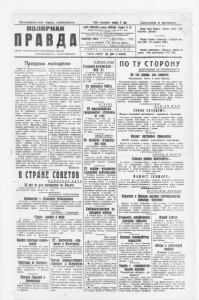 Пролетарии всех стращ соединяйтесь ; Яш шиит» вшра 5 т. Сегодня в номере: ПОЛЯРНАЯ П Р А В Д А О Р Г А Н М У Р М А Н С К О Г О О К Р У Ж К О М Я В К П (б ) О К Р И С П О Л К О М П И О К Р П Р О Ф Б Ю Р О . АДРЕСРЕД1КЦИМ площадь СВОБОДЫ. Телефон £ 33. Прием ежедневно: от 10 ч. утра до 6 ч. дня. Редакция оставляет за собой право Сокращать и изменять рукописи, обратно рукописи не возвращаются. ПОДПИШИ ПЛАН: г л с* одм* нее. по колл, подписке............БОког. • . по н п д е в н д . подписке . . . 65 кос. Цгна sa об'явления п газ, «Полярная Правда*. Стр. яокпкрели позади ты,ста. I р. ипер. 9 ср. тк. 1р. БОк. По спросу ■предлож. труда Ьь с. Объявления об утере одяогодок. 1 р. СУББОТА , 1 сентября 1928 г. № 99 Гаша внхедат трв раза в неделю. Вокруг пакта йеллога.— Против войны.'-ш встретили „Красина". X " __________ < / и г с т я з ш в о г я ш в Максим Горьний вЛенинграде.—Закрытие пле нумаЦКЙ.— Ка конгрессе НИМ‘а. Осеннее соревнование.— Мурманск— Москва на оленях. -Пландемонстрации з Х1У МЮД. ■ Праздник молодежи Завтра X IV Международный 10 j o - шескзй день! День боевого^праздника | трудящейся молодежи. Этот правднис рожден в кровавой человеческой бойне, в 1914 году— рождей, как символ для обседингния молодых пролетариев на борьбу с милитаризмом. В МЮД трудящаяся молодежь всего мира демонстриро вала и будет демонстрировать Сзою сплоченность, боевую готовность для борьбы с капиталом к беззаветную преданность делу рабочего класса. В X IV МЮД трудящаяся моло дежь заявляет, господам капитали стам, что она превосходно видит все их проделки, направленные для орга низации новой человеческой бойви, на удушение революционного движе ния, на уничтожение Советского Союза, несмотря на все разговоры наймитов капитала о мире. Зная это, трудящаяся молодежь Советского Союз*, встречая МЮД, должна принять все меры к тому, что бы лоэунг «Молодежь, умей владеть винтовкой для борьбы с капиталом >, стал-бы боевым ло зунгом в работе каждой комсомоль ской ячейки. Комсомол в первую очередь дол жен научиться владеть винтовкой, чтобы в нужную минуту, он смог встать с оружием в руках на за щиту страны Советов. Комсомол должен помнить в этот день о до блестной Красной Армии и Флоте, должен оказывать необходимую по мощь & деле их укрепления. В МЮД комсомол должен прссмот- ярлэ работу аьпралляйяую в помощь зарубежным братьям, в рто З работе есть еще уйма недостатков, они должны быть изжиты с таким расчетом, чтобы подшефным органи зациям па деле оказывьлась, как мо- рс-льная так и материальная помощь. В этот день комсомол должен при нять все меры к укреплению и н о национального воспитания с тем, чтобы молодгжь СССР знала о том, как живут и работают 8&рубежные братья. В МЮД комсомол должен прове рить свое участие в социалистиче ском строительстве с таким расче том, чтобы это участие действитель но оказывало помощь делу инду- стрвалгввции страны, делу социали стической перестройки деревнг, делу подготовки кадров для велекого строительства. Эта работа должна быть направ- лема так, чтобы в рацвонализзции промышленности и коллективизация сельского хозяйства ншей партии— от комсомола была бы оказана мак симальная помощь. Ленинский комсомол в X IV МЮД проводит кампанию по мзс:озоыу приему pa6o4tй и батрацкой моло дежи В С0Ю8. Комсомол Мурмана должен при нять все меры к тому, чтобы каж дый молодой рабочий и батрак был в рядах Ленинского комсомола. В X IV МЮД Ленинс