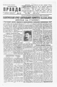 "V Цролетарии всех стран, соединяйтесь! П О Л Я Р Н А Я ПРАВДА ЦЕНА № 5 КОП. V АДРЕС Ш ИШ И : Ш Ш ОЩМШШИ, 11ШПШ. ZD-1. МИ. 4. TU. 33. щ и п и ш и : :: г ™ : 5 :::: Цена за об'явления Строп петита 50 н. Об утере документов 1 р. Газета выходи 3раза введепю. & 5 ^Мы идем на всех парах н сощашму“ . КXVI парт- ч Ч щ п наша страна под руководством нонмунстичеснон г . >'*** парне пришла с новыми грандиозными победами. Эти по- V беды были одержаны в результате четкой Ленинской ли ни, в непримиримо! борьбе с правыми и „левым“ опор- ЧЕТВЕРГ, 3 июля 1930 г. тунизаом, которую вела большевистская партия подруко- № 12 (1235). водством своего ЦК. Орган Мурманского Окружкома ВКП (б), Окрисполкома и Окрпрофсовета. ОД1, ИЗДАНИЙ Х-й Х Л &езд всесоюзной коммунистической партии (большевиков) ПОЛИТИЧЕСКИЙОТЧЕТЦЕНТРАЛЬНОГОКОМИТЕТА ™ вкп(6> Д О К Л А Д тов . С Т А Л И Н А ’). I Растущий кризис мирового капитализма и внешнее положение СССР Товарищи! Со времени XY С‘езда прошло 2!/2 года. Период времени, кажется, не очень большой. А между гам, эа это время произошли серьез нейшие изменения в жизни народов и государств. Если охарактеризо вать в двух словах истекший пе риод, его можно было бы назвать периодом ПЕРЕЛОМНЫМ. Он был пе реломным не только для нас, для СССР, но и для капиталистических стран всего мира. Но между этими дзумя переломами существует ко ренная разница. В то время, как передом втот означал для СССР пово рот в сторону нового, более серьез ного экономического ПОД'ЕМА, для капиталистических стран перелои оэначал поворот в экономическому УПАДКУ. У нас, в СССР, РАСТУ ЩИЙ ПОД'ЕМ социалистического ] строительства и в промышленности и в сельском хозяйстве.^ них, у ка- питалистов, РАСТУЩИЙ КРИЗИС экономики — и в промышленности, и в сельском хозяйстве. Таковы факты. Перейдем к рассмотрению данных об экономическом кризисе в капита листических странах. в Аргентине, в Бразилии, в Австра лии. За весь этот период промышлен- ности САСШ идет в гору. К середине 1929 г. промышленное производство в САСШ достигает почти рекордной высоты. Только со второй половины 1929 г. начинается перелои и потом уже развертывается стремительный кризис промышленного производства* отбросившей САСШ к уровню 1927 г. 1. Мировой экономический кризис а) При изучении кризиса бро саются в глаза, прежде всего, сле дующие факты: 1) Нынешви^ экономический кри зис есть кривис ПЕРЕПРОИЗВОД СТВА. Это вначит, что произведено то варов больше, чем может поглотить рынок. Это вначит, что произведено мануфактуры, топлива, фабрично- заводских изделий, предметов пи- тавия больше, чем могут купить на наличные деньги основные потре бители, т. е. ^народные массы, до- соды которых остаются на низком ппцяе. а так как покупательная иособность народных масс в уело- иях капитализма остается на ми- имально -низком уровне, то «изли шек» товаров, мануфактуры, хлеба i т. д. капиталисты оставляют на кладах или даже уничтожают, ;тобы удержать высокие цены, (роизводство сокращают, рабочих рассчитывают, и народные массы зынуждены бедствовать из-за того, хто произведено слишком много то варов. 2) Нынешний кризис является *) Печатается в сокращенном виде. первым после войны МИРОВЫМ экономическим кризисом. Он является мировым кризисом не только в том смысле, что охватывает все или почти все ПРОМЫШЛЕННЫЕ стра ны мира, при чем даже Франция, систематически впрыскивающая в свой организм миллиарды 