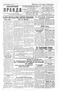 л л л Y*. ЦЕНА ОТДЕЛЬНОГО № 5 КОП. Г " V \ * ё~ \ '- f - V ‘ ~ ? П ! - V Г » w5 Пролетарии всех стран, соединяйтесьI ПОЛЯРНАЯ О Р Г А Н М У РМ А Н С К О ГО О К Р УЖ К О М А ВКП(б) О К РИ С П О Л К О М А И О К РП РО Ф БЮ РО . АДРЕСРЕДАКЦИЙ: зданиеОшпшон. Мтт. 20-а. коп. 4. lu. 33. Прием ежедневно: от к * час. утра до 5 час. дня. Редакция оставляет за собой право сокращать н измемять рукописи, обратжо рукописи же возвращаются. ПОДПИСНАЯ ПЛАТА: индивид. . . . . 50 иоп. . . . . 65 коп. Цена за об'явлэния в газете «Полярная Правда» мояп&репи впер, и ор. теиота 1 р. 50 к В По спросу и предлож. труда . 60 г, позади теиота. • . 1 р. — В 06‘явления об утере одн. дом. 1 р. ВТОРНИК, 25 марта 1930 г. № 32 Газета выходят три раза в неделю. С Е Г О Д Н Я В Н О М Е Р Е : Против „крестового похода".— Борьба за промфинплан в госторге.— Прорыв на „Красном Путиловце" Весенний тресковый и зверобой ­ ный сезон начался.— На пленуме ОК. Ударничество как оно есть.— Слет ды бом .— Смотр общественного пи­ тания. Лесозаготовки.— „Месячник сбере­ ж е н и й " .—Об одном юбилее. НАКЛЕВЕТУМРАКОБЕСОВ, НАТРАВЛЮИПРОВОКАЦИЮОТВЕТИМДРУЖНЫМ СПЛОЧЕНИЕМРЯДОВТРУДЯЩИХСЯВОКРУГБОЕВЫХЗАДАЧСОЦСТРОИТЕЛЬСТВА Наш ответ Иеч за Под непосредственным руковод- Пятилетний план, успешное стро- *святейшего инквизитора*— ительство социализма в СССР — ством главы католической церкви—папы Пия X I свершается на Западе гнус­ ная травля страны советов. На помощь— вместе с «богом* призваны и белогвардейские охво­ стья фашистские изуверы и Детер- динги всех мастей. Вопли о религиозных гонениях в СССР оказались дутыми «липо­ выми*, построенными на песке, и потому так ярко разгоревшаяся кампания подлой провокации под­ держиваемая мировой реакцией— тровалилась с треском. Все молебствия во всех церквях капитализма не собрали людей больше, чем они собирают обычно. Все клеветнические выпады не на­ шли достаточной почвы. Сейчас можно у нас констатировать пол­ нейший провал папской кампании; провал гнуснейшей инситуации, рас- штанной на срыв нашей пятилетки. Зарубежные пролетарии демонстра- 1 ями, протестами, митингами соли­ даризируются с трудящимися СССР, выступают в защиту страны Сове­ тов, разоблачают истинную подоп­ леку выступлений черного воронья. Пролетарии Москвы, Ленинграда, Харькова, трудящиеся страны стро- ющей социализм отвечают на пап скую клевету— вступлением в ряды ударников, в ряды ВКЩб), сплачи­ ваются вокруг задач построения социализма, проведения генеральной **- и * 1 с ш ь . й а р х и л . и р и Л с ж и р И И О т К о Ч а Ь У Х вступлением -£ союз воинствующих оезбожнпкоз, в ряды Осоавиахвма, ■.репят оборону СССР, клянутся шквЕДпровать прорывы промфин лдана, выполнить пятилетку в четыре года. Никаким «папам» не удастся сбить страну Советов с верного ионинского п у т и победоносного строительства социализма. Пролетарии Мур­ манска отвечают церковникам Заслушав доклад т . Лаврова о подготовке против СССР кре­ стового похода, организуемого главой католической церкви па­ пой римским, мы, рабочие и слу­ жащие механической мастерской Севгосрыбтреста, заверяем наше рабочее правительство, что мы всегда готовы стать на защиту нашей рабочей республики и да­ дим должный отпор всем, кто замышляет сорвать наше проле­ тарское строительство. Ставим в известность весь ка- литалистический мир и в том числе всех служителей Христа, что рабочий класс СССР не до­ пустит той 