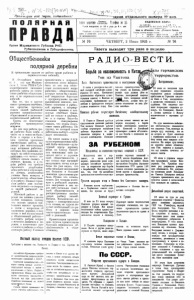 с » v . - ---------^ * - j Пролетарии всех Шрам, соединяйтесь \ к : у \jr ^ ^ \ г 1 у \ J t «-*»*«в 1 »:.ГХ .Г'Л Л - -Г - 1 .-Л \ ^ < цепа отдельного номера ю к о п . П О Л Я Р Н А Я П Р А ВД Л Орган Мурманского Губзшма РКП, Губиополкома и Губпрофсокета, Ш* р а д я и своьчйы Те 18| 0В Ш 25- П$*е* е^едн&вно: ат 13 ч. у гт до 6 и. дня Редакция осг^адп-.т з з собой право сокра щать и из&енять рукописи. обратно рукописи не возвращаются. ПОДПИСНАЯ ПЛАТА: ал сдан мес........................ i ууб. .кл, С яересипкой во вое нести. Fecn. 1 р. 7г. х. w i. Цена за иб'йвлвник с- rss-. «Полярная Правда.. Строка петита погаси т е& с тл .............................. $о кои » л ззереди и среди т е к с т . . i руб. — 4 » об утерр довум. и 1£редя. труда 40 жоь Л6 76 Ч Е Т В Е Р Г , 2 И юля 1925 г. 76 Газета выходит три раза в неделю Общестбенники полярной деребни (К о р г ан и з ац и и к у р с о в по р аб о т е ср еди ры б ач е к и п ер еп о д го т о вк е и збачей ) , В —б лиж айш е е время (с 5 |ля) при Мурман- ском I _ ж ом е РКП и Губ- п о ли тп р о с в е т е начинаю т р аб о т а ть кур сы по подго т о в к е ры б а ч е к -о бщ е с т в ен ниц и по п ер епод го то вк е и збачей . Как т е , т а к и дру ги е имеют громадное зн ачение , к а к средство прочного охв а т а н аш ей рыбацкой дер евни о р г а н и з а ц и о н н о общ ес тв енной и политико - воспитательной работой . К у р сы по под готовке ры б ач е к ор гани зую тся впервые . Д о сих пор р аб о т а с р е ди ры б ач е к была слаба, а часто ее и вовсе не было. Если в городе и в боль ших п у н к т а х проделан а зн ачи тельн а я работа , вы двинут уж е значительный кадр активных работниц , ко торы е , без сомнения , по- т ащ у т з а собой остальных р а ботниц , ~ то нич е го п о добного н ель зя ск а з а т ь о деревне . Правда, и в г о роде работа э т а т р е б у е т с е р ь е зн о го у глубл ения : жены р аб очи х и сл уж ащ их , их дочери , домохо зяйки должны быть втяну ты в п р а к ти ч е с к ую о бщ е с т в ен ную р або ту . Одн ако го р о д ск а я рабо т а уж е п о с т а в л ен а на р ел ь сы—и оч ер ед ь за нашей рыбацкой д е ревней . Ж е н с к о й р аб о т е в д е р е в н е мы должны уд ели ть особое внимание, потому что вполне н а зр ели т р е бования н аш е го времени , в свя зи с вопросами об оживлении деревни , о под нятии в ней политической и общ ественной р аботы — поставить ребром вопрос о женском движении в д е р евн е , о вовлечении к р е с т ьян ок и ры б ач е к в о бщ е ственную р або ту . Главным Р А Д И О - В Е С Т И . преп ят стви ем к ш и р о к ой по становк е э то го в опро с а было до сих пор о т с у т ствие д о с т а точно го кадра р аб о тниц - общ ес тв енниц , которые могли бы с ж е л е з ной твердо с тью боро ть ся с пр едразеудками п р о ти в выдвижения ж енщин , о с о бенно сильными в ры б ац кой деревне , с п а т р и а р хальными нравами и к о с ностью семейных т р а д и ций не тол ьк о в д ер е вн е , но и в городе . Было-бы слишком сам оув еренно ск азать , что к у р сы подго то в я т т а ки х работниц . Но г р уп п у , из к о т о р о й т а к и е рабо тницы вы й д у т—кур сы дадут несомненно . Н е менее важны и ку р - j сы по п ер епод го т о вк е и з б а чей . И з б а - ч и т а л ь н я—к у л ь турны й ц ен т р д ер евни , везде по С ою зу Респуб- ] л и к заво евы ва я себе по- ч е тно е м ес то в д е р е в е н ской общ ес тв енно с ти , у нас тол ько ещ е н ач и н а е т н ащ упы в а т ь п о ч ву для р а боты . Но уж е видно, что и зба -чи тальня з а в о е вы в а е т все большие и большие симпатии крестьянин а -ры - бака . Н уж н о это исполь зо в а т ь для подхода вплот ную к ры б ац кой дер евн е , для внедрения