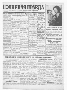 ПОЛЯР ПРОЛЕТАРИИ ВСЕХ СТРАН, СОЕДИНЯЙТЕСЬ! Орган Мурманского ОК и ГК ВКП(б), Очрисполкома, Горсовета и Окрпрофсовета № 124 (2889) 1 ИЮНЯ 1936 ГОДА. Цена 10 коп. 0 ходе школьного строительства в Мурманском округе Бюро Окружкома ВЕЛ(б) отмечает совершенно неудовлетворительный ход школьного строительства в округе. Несмотря на постановление Окруж­ кома и Окрисполкома от 1 апреля с. г., которое обязывало развернуть немедленно строительные работы но школам, чтобы обеспечить выполне­ ние школьного строительства в уста­ новленные партией и правительством сроки, руководителями строительных организации допущены грубейшие нарушения п невыполнение этого по­ становления; поздно начали строи­ тельный работы на большинстве школ, не обеспечили стройки одним из ос­ новных материалов — лесом, неудов­ летворительно поставили организа­ цию работ, а ОкрФО и райФО несвое­ временно проведена' аккомуляцня средств. Выполнение строительной програм мы школ по технической готовности составляет: по г. Мурманску на 20 мая— 26,7 процентов, на 25 мая— 29,8 проц.; по г. Кировску на 20 мая — 27,2 проц., на 25 мая — , ПОСТАНОВЛЕНИЕ БЮРО МУРМАНСКОГО ОКРУЖНОГО КОМИТЕТА ВКЩб) от 2 8 м а я 1936 года полностью окончить строительство к цию труда, на основе широкого вне- 1 июля; дрения стахановских методов работы, школа по Обводной улице за- с 0 с.ред0Т0ЧНТЬ иа этнх стройках не- кончить кладкѵ стен — 3 июня, _ подвести под крышу - к 15 нюня, Удимое количество механизмов, и окончательно закончить — к 15 снабдить полностью необходимыми июля (с благоустройством площадки), строительными материалами, обеспе- Обязать Горсовет решить вопрос об чнвающнмн бесперебойную работѵ в обеспечении подводки водопровода и ѵвеличить количество рабочих в'со- электроэнергии к школе к 1 июля. * . п . ___ к цпм„ „ „ . ответствии с установленным графимо гор. пировску: школы в по- * селке им. Кирова и гор. Кировске, ком работы ного строительства по примеру про­ шлого года, мобилизуя строителей на боевое выполнение постановлений партии и правительства. Начиная с 1 нюня, на всех школь­ ных стройках организовать выпуск стенгазет не реже одного раза в пя­ тидневку. 10. Обязать райкомы в Горком партии, секретарей парткомов строи-1 ПР°*ЬЧ I 1 . 0 рассмотрении жалоб трудя* М. И. УЛЬЯНО- ИНФОРМАЦИОНОЕ СООБЩЕНИЕ 22— 26 мая 1936 года состоялся третий пленум Комиссии Советского Контроля при СНК СССР. В работе пленума приняли уча­ стие товарищи МОЛОТОВ, HYBAfb, ШНИРЯТОВ, ШВЕРНИК, ВЕЙЦЕР, а также представители ЦК ВПКСМ, ВЦСПС и ЦК профсоюзов. Пленум рассмотрел следующие во- тельпых организаций и профсоюзные ,1Ц±Ц г , щихся — доклад организации широко развернуіь соци- вдй алистическое соревнование на школь ных стройках и между ними. 2 . Выполнение Центросоюзом по­ становления СНК СССР и ЦК исходя из взятых темпов работы,! 3. Отмечая неудовлетворительное! 0дшм из основвых показателей ®*П(в) от 29 сентября 1935 года окончательно закончить строитель- снабжение школьного строительства ством к 15 июля. I стройматериалами Ленснабсбытом, бюро ОК предлагает тов. Корасеву По Мончегорску: для школ в Соц­ городке и поселке Монча установить .срок окончания фундамента к 5 сосредоточить внимание на быстрей- июня, кладку стен — к 20 июня и шей реализации выделенных фондов окончательную сдачу — к 1 авгу- и обеспечение снабжения школьных строек всеми фондируемыми и нефон- По шк