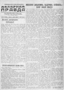 1 П РО Л Е ТА РИ И ВСЕХ СТРАН . С О Е Д И Н Я Й Т Е С Ь ! Г I в Я Я Р 11 в я п р а в д а а -............... ............. .......... .1 .............. . Il I І.І ОРГАН МУРМАНСКОГО ОБКОМА И ГОРКОМА ВКП(б) И ОБЛАСТНОГО СОВЕТА ДЕПУТАТОВ ТРУДЯЩИХСЯ Г о д и з д а н и я X X I I I N°. 180 (4563). Суббота, 1 августа 1942 г. Цена 15 коп. Боевая программа действий На д а ж заівйшчш Свюю району очередной пленум Мурманского об­ кома ВКІГ(б). Ншепум оібсдаи и принял решение по двум важней­ шим ефвя Нашей юібласти вопросам. В оадсіве tax аійжйт одна забота — как можНо адчяне, как моіжноі nofcr нее использовать боігатейппю м ест вые нроДовтаьств'епныэ Источники дргя Снабжения бо.іщ% тыііа в фропта. Пленум с удовлетворением отметил, что, несмотря на целый ряд больших трудностей, трудящиеся области в оиноеіліом успешно сілраівиітіись в за­ дачами весенней mtaeEttoi каімііта- нии, засеяли на 409 гектаров боль­ ше, 'тем ів гафдедревд довоенис'м го­ ду и на 10 деей раныта щюптіто.- кшето. Это есть результат гер®- труда! кодйЩ кййсё и копг хо'йкиш;, районах и работниц соихог а д , МТС, ncftrfflitbux зйаяйегт® при преДпркяжяіх, реодліьтат бошышюй работы партийных, комооМошьсшх и советских организаций. Теперь задана зашіонаіется в tori , чтобы, не успокаиваясь на достиг­ нутых уснеіхах ів (проведении сеіва, повсюду юрганизюшЫть образцовый уйед за п осжш и , Вделать все д)ві того, чтобы вырастить богатый уро­ жай и .всесторонне тізіготоівішгься к его уборюе. Партийные и советский организации вімеііот но аію&цу < еойг рюиу чешую п^одрайму действий, изложенную в пюстащШении Ооаг aagtooiMal СССР и ЦК ВКП(б) и кон­ кретизированную в деталях, исхода ив местных уеіліовий, реигаияя&ій пленума адбімма ВІКЩб). На борьбу за ш ноанение этих решений тор" тийщздз ошргаизаіции должны йоіг Иѵ*ь (всю мк-оу ттховлшѵ в и ікоіг ЖЕЛЕЗНАЯ ДИСЦИПЛИНА, ВЫДЕРЖКА, СТОЙКОСТЬ- ЗАЛОГ НАШЕЛ ПОБЕДЫ йоОшіц, рабочих и работниц совко" зов и МТС. По-военному четко, быст­ ро и дат# лпявим лсѵлхжио Сыть обее' еечеиоі щьтхтнешие каждой» пункта решений пленума, обКоаіа BKII(n). Если по сельскому хозяйству мы ставим перед собой задачу удойлег ворения собственных потребностей, то иоі рыба мы даж-ем и дояйаш в значительно большей мере чем до сих Пор помотать (государству снабжать армию и страну этим важ­ нейшим в и д а продовольствия. В мшаное время шиши рнбники привыкал в пщрйййх (щкеторая Ба- реінцова іМоря черпать рыбу десіят кааги топи за один под’ест. Сейчас иные уалшшя. Их пока плохо учаг тышажи руководители рышюй про- мышленности, не сумевшие до кон- перестроить шого раібюту на во­ енный лад. Пленум шшужідей быт дать нег' удсйлеггіЕ>с(р(мггатьііЩ'ю опенку работе рЫбіІОЙ 1ЩКМЬ:ГШПе.ПІНіО'СТИ и РіШ рыбшоівецких косшшв. Зад обязыг вает руководителей Тдавсеврыбпро- ма, секретарей райкомов ВКП(б), председателей райисполкомов ры­ боловецких районов критически пересмотреть 'метода <©оей работы, всемерна уоййаггь руководств© 'Про- мыелісм, раіботой ръазйлюаеиких брагац, 'бвревшт праіщриятай. Cefr час благоприятная промысловая об- •'агаилогака., есть шее возможшет ваг верстать ушущейное, обшаеч'пть пег ревыподцение плапа. Реаиегят шкщ 'ма оійкома ВКП(б) — боевая программа действий боль- шевигоов ■и всея; труцяшщкея с-овет- сійойо Запосвярья. Они зовут к ш>- вым уш екам в борьбе за чЮгъ н овоі&сиу РОЛШЬБ. ПЛЕНУМ МУРМАНСКОГО ОБКОМА ВКП(б) 27 — 29 июля 1342 года состоялся очередной пленум Мур­ манского обкома ВКП(