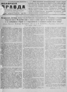 Пролетарии веек стран, соелиняитесЫ П О И Я Р И Й Я ІРІШ •ГАН МУРМАНСКОГО ОБКОМА И ГОРКОМА ВКІІ(б) ОБЛАСТНОГО СОВЕТА ДЕПУТАТОВ ТРУДЯЩИХСЯ Г о д и з д и н II я X X I 11 „Что касается международных связей нашей родины , то она окрепли и выросли в последнее время , как никогда . Против немецкого империализма объе динились все свободолюбивые народы, Их взоры обра щены к Советскому Союзу. Героическая борь6ау ко торую ведут народы нашей страны за свою свободу , честь и независимость, вызывает восхищение всего J (4725. | ОС«реое^ье; 21 ИЮНЯІ 942 Г. Цена 15 ^ . 1 Прогрессивного ЧеЛОвеЧвСШва а И. СТАЛИН. ЗАСЕДАНИЕ ВЕРХОВНОГО СОВЕ ТА СССР Ратификация „Договора между Союзом Советских Социалистических Республик и Соединенным Королевством в Великобритании о союзе в войне против гитлеровской Германии и ее сообщников в Европе и о сотрудничестве и взаимной помощи после войны* Доклад Народного Комиссара Иностранных Дел тон. В. М. МОЛОТОВА в Верховном Совете СССР 18 июня 1 942 г ода Товарищи депутаты! Правительство признало необходимым предста вить Верховному Совету на рассмотрение и рати фикацию англо-советский договор, заключенный 26 мая в Лондоне. Это сделано ввиду важного политического значения этого договора. Договор укрепляет сложившиеся между Советским Сою зом и Великобританией дружественные отноше ния и взаимную военную помощь о борьбе с гит леровской Германией и превращает эти отноше ния ч прочный союз. Договор определяет также обг .и линию наших действии вместе с Англией в послевоенный период. Всем своим Содержа нием договор подчеркивает его большое политиче ское значение не только в развитии англо-совет ских отношений, но и в дальнейшем развитии всей совокупности международных отношений в Европе. Англо советский договор, как и результаты переговоров, которые мне, по поручению Совет ского Правительства, пришлось вести в Лондоне и в Вашингтоне, свидетельствуют о серьезном укрепления дружественных отношений между Советским Союзом, Великобританией и Соединен ными Штатами Америки. Для народов Советско го Союза, которым приходится нести главную іЯжесть борьбы с гитлеровской Германией, это имеет тем большее значение, чем больше это ускоряет нашу победу над германскими захват чиками. Договор, как и другие результаты пере говоров в Лондоне и Вашингтоне, должны уско- /,і ь разгром гитлеровской Германии и ее сообщ- ^ i L J ob по агрессии в Европе и, вместе с тем, по служат надежной базой для дальнейшего разви тия дружественных отношений между СССР и Великобританией, а также между обеими страна ми и Соединенными Штатами Америки. Договор и достигнутая как между Советским Союзом гг Англией, так и между Советским Союзом и Сое диненными Штатами Америки договоренность по ряду важнейших вопросов нынешней войны и о совместной работе после войны означают укре пление боевого содружества всех свободолюби вых народов,, возглавляемых в наше время Со- окям Союзом, Англией и Соединенными НІта- W. Я напомню события, которые предшествовали Заключению англо-советского договора 26 мая и которые явились главными этапами в развитии новых, дружественных отношений между Совет ским Союзом и Великобританией. Известно, что уже в день нападения Германии на Советский Союз—22 июня прошлого года-- Премьер-Министр Великобритании г. Черчилль выступил с твердым заявлением, что Англия окаже