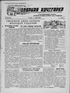 ПРОЛЕТАРИИ ВСЕХ СТРАН СОЕДИНЯЙТЕСЬ! тятя ишгяш ОРГАН ПРОФСОЮЗНОГО КОМИТЕТА СОВЕТСКИХ УГОЛЬНЫХ РУДНИКОВ острова ШПИЦБЕРГЕН JMb 124 (154) Вторник, 1 ноября 1949 г. Год ИЗДАНИЯ2-й У М Н О Ж А Й С В О И У С П Е Х И , М О Л О Д О Й Р А Б О Ч И Й ! Они упорно овладевают мастерством МОЛОДЕЖЬ СТРАНЫ СОВЕТОВ Молодые строители коммунизма, граждане великой социалистической державы, не знают тех тягот, которые делают мрачной и безра достной жизнь молодежи в стра нах капитала. Большая гордость за нашу Родину, где воплощены >і\ вековые чаяния человечества, на полняют сердца советских людей. Мы видим советскую молодежь на самых ответственных участ ках социалистического строитель ства. Она, не зная усталости, вос станавливает разрушенные гит леровскими захватчиками шахты, заводы, фабрики, воздвигает но вые города и прокладывает желез нодорожные магистрали. И где бы ни находился молодой советский рабочий, он трудится с большим вдохновением и с боевым задором. Молодежь, работая на советс ких угольных рудниках острова Шпицберген, самоотверженным трудом помогает коллективу по лярников в создании социалисти ческих накоплений, ведет борьбу за экономию сырья, материалов, \ектроэнергии. Показывает ста хановские образцы работы, высо кую производительность труда, выполняет и перевыполняет про изводственные планы. Знат ные люди нашего физ- культактива т. т. Марочинский, Филин, Корнюхин, Варфоло меев, Комин, Морозова, Бурлакова, Соколова, Гольдберг, Пающик, Бес- сольцев идут в первых рядах пе редовиков социалистического сорев нования. Наша молодежь является также застрельщиком культмероприя- тий, проводимых в клубе, в обще житиях, выступает по радио в концертах и активно участвует в художественной самодеятельнос ти. Но у нас еще не все сделано для молодежи. Подчас, со стороны об щественных и хозяйственных ру ководителей отмечается равнодуш ное отношение к запросам молоде жи. На рудниках Баренцбург и Грумант администрация отказа лась предоставить помещение для физбюро, имеются случаи роспуска молодежных бригад. Рудкомы стоят в стороне от конкретного руководства социалистическим со ревнованием молодежи. Недоста точно заботятся о повышении производственной культуры моло дых кадров, не развивают сеть стахановских школ, курсов и круж ков техминимума. Задача общественных организа ций всячески помочь молодежи, ^ создать условия д л я ее творчес - , кого труда. В прошлом месяце в ГРП Пирамиды была организована молодежная бригада буровиков старшего мастера Иванова. Бригада своими силами демон тировала и смонтировала на новом месте агрегат, который был пущен в работу ранее ус тановленного срока. В преобладающем своем боль шинстве молодые буровики толь ко здесь на острове начали ос ваивать процесс механического бурения. Старые опытные бу ровые мастера Иванов, Петров, нач. ГРП Капитонов заботли во растят молодых специалистов. Молодежь учится с большим желанием, перенимает опыт своих старших товарищей. Те перь уже бывает такие дни, когда молодые буровики Маль цев, Фадеев, Лысов. Булахов выполняют свои сменные зада ния даже на 300—В50 процен тов. В развернувшемся социалис тическом соревновании к 32-й годовщине Великого Октября молодые буровики идут впереди. План работ октября выполнен ими на 128 процента. Е. Евгенева БРИГАДИР МАРОЧИНСКИЙ Владимир Марочинский при был на рудник 