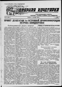 ПРОЛЕТАРИИ ВСЕХ СТРАН, СОЕДИНЯЙТЕСЬ} оляршкоття ОРГАН ПРОФСОЮЗНОГО КОМИТЕТА СОВЕТСКИХ УГОЛЬНЫХ РУДНИКОВ острова ШПИЦБЕРГЕН №» 75 (251) Суббота, 2 сентября 1950 г. Год издания 3-й ПРИВЕТ ДЕЛЕГАТАМ 3 - й ОСТРОВНОЙ ПРОФКОНФЕРЕНЦИИ ОСТРОВА ШПИЦБЕРГЕНА! По-большевистски решать вопросы! ПРОВОДИТЬ РЕГУЛЯРНЫЙ ИНСТРУКТАЖ АГИТАТОРОВ! Сегодня открывается Третья островная отчетно-выборная проф- конференция советских рудников Шпицбергена — заключительный этап отчетно-выборной кампании, в работе которой примут уча- втне делегаты от профорганиза- , <ций рудников Пирамиды, Груман- іа, Баренцбурга, бухты Кольсбея. Прифконференция подведет ито­ ги большой и многогранной ра­ боты, которую провели за отчет­ ный период наши профорганиза­ ции под руководством Централь­ ного Комитета ВКІІ(б), великого вождя и учителя партии и на­ рода товарища Сталина. Текущий год отчетного перио­ да проходит под знаком все­ возрастающей политической и производственной активности со­ ветских горняков, славных тру­ жеников Арктики. Опираясь на великую помощь своего правительства и больше­ вистской партии, советскиешах­ теры острова Шпицбергена ус­ пешно борются за осуществление задач, стоящих перед ними, из месяца в месяц увеличивают добычу угля. Встречая свой слав­ ный праздник, День шахтера, новымн производственными ус­ пехами, полярники Шпицберге­ на выполнили 8-месячный план добычп угля по тресту 16 ав­ густа и план августа—ко Дню шахтера. Развивая свои трудовые успе­ хи и шире развертывая социа­ листическое соревнование, гор­ няки встречают открытие проф- конференции повышенными про­ изводственными обязательствами —сверхплановой выдачей угля на-гора. В этом трудовом производст­ венном подъеме полярников ска­ залась организующая и мобили­ зующая роль профкома треста и рудничных профорганизаций. Выполняя указания Централь­ ного Комитета партии, профком усилил живую связь с профбю­ ро рудников и низовыми проф­ организациями, активизировал производственно - хозяйственные органы, повысил их роль и от­ ветственность в решении хозяй­ ственных и производственных вопросов. Профком укрепил руд­ ничные профорганизации, на большинстве объектов добился правильной расстановки членов профорганизаций. В результате первичные профорганизации ок- 'реплн, стали более активно влиять на хозяйственные дела рудников. Все более опираясь в своей деятельности на первичные профорганизации и профактив, профком сумел заметно улуч­ шать профполитичеекую работу на рудниках в текущем _ году. Это особенно ярко сказалось на развертывании социалистическо­ го соревнования и общем трудо­ вом подъеме полярников в пос­ ледние, месяцы. Залог новых производственных успехов, их прочность и дли­ тельность целиком зависят от дальнейшего улучшения всей профорганизационной и профпо­ литической работы, совершен­ ствования методов профруковод- ства хозяйственными органами и укрепления связи профкома и профбюро с массами. Поэтому Третья профконференцпя должна пройти под знаком закрепления достигнутых производственных успехов и дальнейшего усиления борьбы за улучшение не только количественных, но и качествен­ ных показателей работы цехов, рудников, за повышение рен­ табельности всех хозяйственных подразделений треста, за неук­ лонное снижение себестоимости добываемого угля. 
