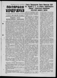 полярная к о ч е ги ч я Орган профкома советских угольных рудников на Шпицбергене Пролетарии всех стран, соединяйтесьI №71 (1166) Среда,3 сентября 1958 г. Годиздания 11-й Закрепить успехи предпраздничного соревнования Горняки советских угольных рудников, как и все шахтеры нашей великой Родины, достой но несли предпраздничную тру довую вахту. Они добились но вых успехов в добыче угля, настойчиво боролись за высокие технико-экономические показа тели. Многие коллективы дава ли высокую производительность труда; выросли, пополнились но выми именами ряды передови ков. В числе удостоенных на град по Министерству морского флота СССР рабочие очистного забоя тт. Митрофанов и Сопов, лесодоставщик тов. Кутаренко, машинист электровоза тов. Аку линичев, крепильщик тов. Бу шуй, проходчик тов. Султанов горный мастер тов. Стефаненко, плитовой тов.. Глазков и другие. Достигнутые успехи обязы вают нас работать еще лучше, приумножать трудовую славу шахтеров Заполярья. Хозяй ственные руководители и обще ственные организации рудника Баренцбург сумели мобилизо вать коллектив на то, чтобы достижения предпраздничного соревнования были закреплены. И вот баренцбуржцы рапортуют о новой победе:-пошел уголь в счет октября. На Пирамиде принимаются меры к росту угледобычи, обес печению ритмичной работы всех бригад, смен. Вместе с тем, на наших пред приятиях имеется много неис пользованных резервов. На пере довом руднике Баренцбург мож но давать значительно больше топлива, чем сейчас, если до биться систематического выпол нения плана первым участком, всеми комплексными бригадами. Как ни странно, но на Пи рамиде добычный участок не справлялся с заданием, а пре вышение программы достигалось за счет... отдела капитальных работ. Руководители предприятий подчас предпочитают доволь ствоваться хорошими средними показателями, мало заботясь о создании всем трудящимся условий для успешного выпол нения принятых на себя обя зательств. Многочисленные фак ты показывают, что все еще велики простои рабочих из-за различного родаорганизационно- технических неполадок. Маши ны и механизмы используются далеко не на полную мощность, еще часто выходят из строя. Можно встретить, к сожале нию, факты грубейшего нару шения дисциплины, случаи не честного отношения отдельных рабочих к своим обязанностям. У нас на рудниках трудит ся большой отряд передовиков. Он накопил значительный опыт скоростной углевыемки, проход ки горных выработок и т. п. Но прогрессивные- методы не изу чаются и не обобщаются, не стали всеобщим достоянием. Наступил сентябрь — послед ний месяц третьего квартала. Уже с первых дней надо при водить в действие резервы роста добычи топлива, сниже ния его себестоимости, улуч шения качества. Тут большую ценность представляет широ кий разворот социалистического соревнования последователей Николая Мамая, Александра Кольчика и других новаторов производства. Каждый поляр ник рудников может давать сверхплановую продукцию, вне сти свой вклад в снижение стоимости каждой тонны добы того угля. Это должно стать первоочередной, главной зада чей всей деятельности наших об щественных организаций, хо зяйственных руководителей. У трудящихся советских угольных рудников Шпицберге на есть все возможности для того, чтобы не только закрепить успехи, достигнутые в пред праздничном 