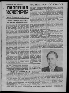 't- пр олетарии всех стран, соединяйтесь! полярная ИЧЕГЯШ Орган профкома советских угольных рудников на Шпицбергене №25 (1225) Суббота, 28 марта 1959г. Год издания 12-й Общественный порядок- под охрану общественности Замечательный лозунг на­ шего времени — жить и рабо­ тать по-коммунистически—стал законом миллионов, вдохновен­ но строящих коммунизм. И это вполне закономерно: массы все больше и больше убеж­ даются в том, что новый ру­ беж можно взять лишь при условии дальнейшего повыше­ ния сознательности, образова­ ния, культуры трудящихся, настойчивой борьбы за еозда- ние из билия материальных благ. В патриотическом движении бригад и ударников коммуни­ стического труда участвуют уже многие полярники. Благо­ родные, возвышенные дели ста­ вят перед собий Иосиф Грине­ вецкий, Александр Спиров, Гри­ горий Якупов, Леонид Плато­ нов, Виктор Граховский и дру­ гие. Проходить горные выра­ ботки скоростным методом, по­ вышать производительность тру­ да, культуру производства, бе­ речь машины и механизмы, экономить государственные средства—вот их цель на про­ изводстве. Есть в обязательст­ вах и другие пункты, каса­ ющиеся морального облика че­ ловека, его поведения в быту, участия в общественной жиз­ ни. Но в семье, говорят, не без урода! Правильно отмечают ЦК КПСС и Совет Министров в своем по­ становлении «Об участии тру­ дящихся в охране обществен­ ного порядка»: «в нашем со­ ветском обще.стве еще имеют­ ся лица, которые не соблюда­ ют нормы общественного пове­ дения, появляются в нетрез­ вом состоянии в общественных местах, совершают хулиган­ ские действия и другие прос­ тупки». Нет нужды называть здесь таких «героев». Их хо рошо знают в каждом коллек­ тиве. Отрадно лишь отметить, что трудящиеся не терпят на­ рушителей в своей среде. Они подвергаются суровому осужде­ нию, их воспитывают, убеж­ дают, а тех, кто не желает исправляться, наказывают. С глубоким одобрением от­ неслись полярники к решению ЦК КПСС и Совета Министров передать некоторые функции административных органов ор­ ганам широкой общественнос­ ти. Повсеместно на рудниках высказывались предложения о создании добровольных дружин по охране общественного по­ рядка. Руководствуясь указа­ ниями партии и правительст­ ва и пожеланиями трудящих­ ся, профком вынес по этому вопросу специальное постанов­ ление. Создавая народные дружины, общественные организации руд­ ников должны учесть рекомен­ дации собраний коллективов. Ведь дружинникам будет пору­ чено почетное дело борьбы с нарушителями общественного пирядка и главное, как под­ черкивается в постановлении ЦК КПСС и Совета Министров, воздействия на нарушителей путем убеждения и предупреж­ дения. Доверим охрану обществен­ ного порядка самым авторитет­ ным, достойным, уважаемым людям! XII С Ъ Е З Д ПРОФСОЮЗОВ С С С Р 23 марта с отчетным докладом о работе ВЦСПС и задачах Профессиональных Союзов СССР в связи с решениями XXI съезда КПСС выступил председатель ВЦСПС тов. Гришин. От имени съезда, от имени более 50 мил­ лионов членов профсоюзов тов. Гришин го­ рячо поблагодарил Центральный Комитет КПСС за приветствие и заверил, что совет­ ские профсоюзы и впредь будут неустанно бороться за процветание нашей Родины, бу­ дут верными проводниками политики партии в широчайших народных массах. Характеризуя деятельность Профессиональ­ ны