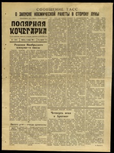 СООБЩЕНИЕ ТАС С О ЗАПУСКЕ КОСМИЧЕСКОЙ РАКЕТЫ В СТОРОНУ ЛУНЫ Пролетарии всех стран, соединяйтесь! ПОПЯРЫОЯ КОЧСГЛРКЛ Орган профкома советских угольных рудников на Шпицбергене № 1 ( 1201 ) Суббота, 3 января 1959 г. Год издания 12-й Решения Ноябрьского пленума— в массы Советские полярники на Шпицбергене, как и все тру­ женики нашей необъятной Ро ­ дины, проявляют живейший интерес к тезисам доклада то­ варища Н. С. Хрущева на X I I съезде КПСС. Наши люди го рячо одобряют предначертания партии по дальнейшему у к ­ реплению экономического мо­ гущества нашей страны. На всех предприятиях идет трудовая вахта за достойную встречу X X I съезда КПСС, пе редовые бригады и смены нас­ тойчиво стремятся завоевать почетное звание коллективов коммунистического труда. Задача наших обществен ных организаций — еще боль­ ше расширять и укреплять связь с массами. Важнейшее значение приобретает теперь широкое разъяснение материа­ лов Ноябрьского пленума. На­ до довести до сознания каждо­ го полярника смысл этих до­ кументов, показать, какие ве­ личественные перспективы от­ крываются перед нашей Ро­ диной в будущем семилетии. Всемерной поддержки за­ служивает инициатива профбю­ ро рудника Грумант. Здесь записали на магнитофонную пленку и затем перепечатали на машинке решения Декабрь­ ского пленума ДК КПСС, об­ судившего вопрос «Итоги раз­ вития сельского хозяйства за последние пять лет и задачи дальнейшего увеличения про­ изводства сельскохозяйствен­ ных продуктов». Агитаторов снабдили и другими необходи­ мыми для бесед материалами. Такую конкретную помощь агитаторам следует оказывать на всех рудниках. Весьма важ ­ но, чтобы во время бесед го­ ворилось не только о тех из­ менениях, которые произойдут в будущем семилетии в целом по стране, но и перспективах советских предприятий Шпиц­ бергена, о роли и месте каж ­ дого трудящегося в выполне­ нии планов, намечаемых пар­ тией. К сожалению, в нашей аги­ тационной работе еще не прои­ зошла необходимая перестрой­ ка. Не добилось регулярного проведения групповых и инди­ видуальных бесед профбюро рудника Баренцбург (секретарь тов. Иванов). Недостаточно опе­ ративно и целеустремленно раз­ вертывают разъяснительную ра­ боту другие агитколлективы. Сейчас особо важное значе­ ние приобретает работа по даль­ нейшему повышению коммуни­ стической сознательности по лярников, усилению марксист­ ско-ленинского воспитания кад­ ров. Требуется так поставить дело, чтобы к разъяснению т е з и с о в доклада товарища Н. С. Хрущева были привлече­ ны все занимающиеся в полит­ кружках и политшколах, все, кто выписывает и читает цент­ ральные газеты, где помещены материалы Ноябрьского плену­ ма. В пропаганде семилетнего пла­ на видное место принадлежит стенным газетам, местному ра­ диовещанию, которые, также, еще не используются в полной мере. В арсенале наших профорга­ низаций — большое разнообра­ зие форм и методов политиче­ ской работы. Общественные ор­ ганизации рудников должны до­ биться такого положения, что­ бы всюду по-настоящему бур­ лила боевая политическая рабо­ та, поднимающая трудящихся на выполнение заданий, на но­ вые подвиги во славу Родины. Вместо угля — отходы древесины 1957 — 1958 годы ознамено­ вались крупнейшими достиже­ ниями Советского Союза в об­ ласти ракетостроения. Запуски советских искусственны
