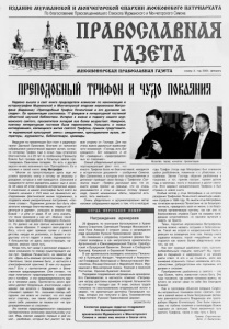 ИЗДАЛИ© МУРМАНСКОЙ И МОНЧ6ГОРСКОЙ еп лр хии МОСКОВСКОГО ПАТРИАРХАТА По благословению Преосвященнейшего Епископа Мурманского и Мончегорского Симона П Р Ш Ш Я Я Ш О Т МИООИОНвРОКАЯ ПРАВОСЛАВНАЯ г а з е т а номер 2, год 2004, февраль ПРШМНЫЙ ТРИФОН НЧУДО ІТОШНИЯ Недавно вышла в свет книга председателя комиссии по канонизации и историографии Мурманской и Мончегорской епархии иеромонаха Митро фана (Баданина) «Преподобный Трифон Печенгский и его духовное на следие». Ее презентация состоялась 17 февраля в литературной гостиной областной научной библиотеки. Интерес к жизни и подвигу нашего мур манского святого, просветителя лопарей все более возрастает. Наверное, поэтому литературная гостиная была переполнена. Услышать о новых исследованиях, касающихся жития святого Трифона, пришли представите- іи мурманской культурной элиты: священники, преподаватели вузов, ли тераторы, журналисты, библиотекари, краеведы. Ведущим на презентации был поэт и радиожур налист Дмитрий Ермолаев. Вначале он напомнил собравшимся канонический вариант жития, соглас но которому Трифон еще в юные годы отличался благочестием, а в 25 лет по особенному Промыслу Божию был призван идти в Кольскую землю про поведовать Евангелие лопарям. Но есть и другая версия начала жизненного пути Преподобного. Ео и изложил в своей книге отец Митрофан: - Многие из присутствующих здесь еще не успели прочитать книгу и потому не знакомы с доводами, которые в ней приводятся. Сомнения в правдивости жития зародились давно: еще в нача ле XX века об этом говорила историческая наука. К сожалению, в нашей агиографии было взято за правило начиная с XVII века не заниматься ис следованием фактической жизни подвижника, а создавать некие умозрительные построения, «пле тение словес». Подвижник должен был быть обя зательно измлада благочестивым, «первым об ретаться в церкви», услышать в юности глас JJ Божий - и уйти от мира. Я не хочу сказать, что таких примеров у нас нет. Именно такой была жизнь преподобного Феодорита Кольско го. Но далеко не все святые начинали свой путь таким образом. У каждого своя дорога к Богу, кто-то идет прямым путем с самого детства, никуда не уклоняясь, а бывает и по- другому: кто-то падает и вновь поднимается. У большинства из здесь присутствующих, на верное, именно такой путь. Когда пять лет назад я рассказал владыке о своих сомнениях по поводу существующего жи тия прп. Трифона Печенгского, он заметил на это: «Здесь есть влияние протестантизма». Дей ствительно, такое влияние было, в частности в агиографической практике. В чем это вырази лось? Есть у протестантов догмат о Боже ственном предопределении. Они считают, что люди изначально предопределены к спасению или к погибели, и эта предопределенность вид на в человеке сразу. Протестанты много вре мени уделяют бездомным, алкоголикам, нарко манам: они возятся с бомжами, кормят их, отмывают, одевают. Но... оказывая помощь заб лудшим, они вовсе не считают, что эти люди могут спастись, они таким образом спасают самих себя, ухаживая за такими вот «не пре допределенными ко спасению». Это понятие «предопределенности» совершенно противоположно истинному евангельскому уче нию. Ведь совсем недаром первым в рай во шел... разбойник, который был распят по пра вую сторону от Господа. Для нас очень важно держаться православ ного понимания: «Господь 