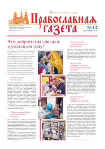 Миссионерская авославная Периодическое издание Мурманской и Мончегорской епархии Московского патриархата, издается с 1998 года газета № 12 ДбКАЕРЬ 2014 Что доброго мы сделали в уходящем году? Вот и подошел к концу 2014 год. За прошедшие 12 месяцев нам пришлось немало пережить и многому порадоваться, а еще совершить по- настоящему правильные поступки, по-доброму улыбнуться людям, сказать хорошие слова и организовать интересные встречи, в ходе которых обсудить, как сделать этот мир хоть чуть-чуть лучше. Но если какие-то мгновения прошлого мы уже не сможем восстановить в своей памяти, то действительно значимые события навсегда останутся в сердце. Давайте вспомним, чем запомнился мурманчанам этот богатый на добрые дела уходящий год и пролистаем почти закончившийся календарь. Театр родом из народа К Рождеству Христову в отделе эстетического развития «Ковчег» Молодежного социального центра г. Апатиты всегда готовятся тщательно, заранее продумывая чем удивить местных жителей. В этом году рукодельницы под руководством местной мастерицы Татьяны Ноздрачевой решили возродить традиции вертепа — народного кукольного театра, который в свое время был любимым народным развлечением на Рождество. Главных героев спектакля — Святое Семейство, волхвов, пастухов, Рахиль с младенцем, Ирода и беса, смерть —шьют мастерицы, а потом надевают на длинные палочки, с помощью которых и управляют куклами во время короткого представления. Первыми зрителями апатитского вертепа стали воспитанники «Ковчега» и воскресной школы Успенского храма. Православный храм для защитников Родины В поселке Высоком —гарнизоне, где проживает несколько тысяч военнослужащих и членов их семей, открылся храм святого благоверного ве­ ликого князя Александра Невского. Изначально церковь дислоцировалась в поселке Нефтяник, а осенью 2013 года ее перевезли сюда, и жизнь в Божием доме закипела с новой силой. Настояте­ лем нового храма назначили иерея Александра Яковлева. У военных, в большинстве своем верующих и нуждающихся в духовной поддержке людей, наконец, появилась возможность принять уча­ стие в богослужении в своем храме. До этого им приходилось ездить в районный центр на обще­ ственном транспорте. Пополнение в Кандалакшском благочинии Одно из самых важных событий уходящего 2014 года — учреждение нового прихода в поселке Белое Море (Кандалакшский район) в честь прп. Сергия Радонежского, 700-летие со дня рождения которого отмечалось в эти дни. 10 февраля были избраны настоятель (им стал игумен Силуан (Николаев)), приходской совет и ревизионная комиссия. Творчество северян оценили на международном уровне Рукописная книга «Золото осени» воспи­ танников воскресной школы Предтеченского храма Кандалакши стала победителем номи­ нации «Стань природе другом» в XVII Между­ народном конкурсе рукописных книг. Три м есяца учащиеся ЗА класса Кандалак­ шской школы № 1 Александра Титова, Юрий Сердюк и Ксения Моисеева трудились над своим детищем. В своей работе ребята отра­ зили всю красоту нашей северной природы. Они сочинили стихи, сказки и нарисовали иллюстрации к ним. Для оформления книги использовали только природный материал. В итоге получилось замечательное издание, которое по достоинству оценили на между­ народном уровне. «Пасхальная радость» добрыми руками Вот уже на протяже
