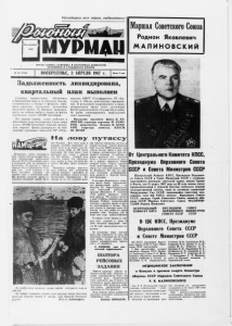 Пролетарии всех стран, соединяйтесь! Маршал Советского Сюза Родион Яковлевич М А Л И Н О В С К И Й ОРГАН ГЛАВКА «СЕВРЫБА» И ПАРТИЙНЫХ КОМИТЕТОВ ТРАЛОВОГО И СЕЛЬДЯНОГО ФЛОТОВ № 40 (1813) ВОСКРЕСЕНЬЕ, 2 АПРЕЛЯ 1967 г. Цена 2 коп. Задолженность ликвидирована, квартальный план выполнен Сложн а я промысловая обстановка в Баренцевом море и на Дальнем Западе , сложивша я с я в январе и феврале , поро дила серьезное отставание коллектива тралового флота. 14 февраля з адолжен ность по добыче рыбы в сырце по флоту сос тавляла почти 110 000 центнеров. Но верные своему слову: работать в юбилейном году по-ударному и дать сверх плана 100 000 центнеров пищевой продук ции, моряки флота развернули по ини циативе передовых экипажей ГІР «Пере- мыніль», БМРТ «Сепафнмович», РТ «Ка сатка» и «Мета» действенное соревнова ние. В результате напряженного и само отверженного труда всего коллектива флота задолженность государству в добы че рыбы ликвидирована , квартальный план выполнен. Начальник тралового флота Д . КА- ЛЮГИН, секретарь парткома М. КЕМЕ- РОВ, председатель базкома Н. БАТУ- РОВ, секретарь комитета ВЛКСМ Ю. ЮГИН. Н а л о в у п у т а с с у Двадцатого марта ныпешпего года опорпо-показатольный боль шой морозильный рьгболонный траулер № 412 «Революция» ушел в очередной рейс на промысел в Атлантику. Настроение у членов экипажа было приподнятое. Каж дый знал, даже новички, а их ^более половины команды, что корабль идет в необычпый рейс. Мы должны завоевать право на зываться командой имени 50-ле- тия Октября. Для этого надо к первому октября выполнить го довой план и до конца года до вести вылов рыбы до 100 тысяч центнеров. На этом судне стало правилом: дал слово -г сдержи его. Вот почему каждый член экипажа уверен, что обязатель ство, взятое в честь ГіО-летия Ве ликого Октября, будет выполне но. ..................- Машинная команда иснользо- вала переход для устранения огрехов ремонта, проверяла ни рабочих режимах главное и вспо могательное оборудование. - Не смотря на то, что старший меха- На прибрежном промысле сельди хорошо потрудился экипаж СРТ-724. ІІа снимке: передовые моряки этого траулера матрос. Валентин Иванович Карасев (слева) и мастер лова Николай Яковлевич Д я имоп. Фото С. Александрова. ник Виктор Романович Беляев и второй механик Сергей Дацонко идут на этом БМРТ впервые, они сумели быстро войти в курс дел и хорошо организовали труд ма шинной команды. К ириходу в район промысла все агрегаты были в боевой готовности. Кета ти, о районе промысла. Перед отходом члены нашего экипажа были ориентированы на Лабра дор и, как запасной вариант, бан ку Джорджес. Но еще на uepe-j ходе получили распоряжение: курс держать к берегам Запад ной Ирландки. .. В истории Мурманского трало вого флота банка Поркьюпайн как промысловый район — не известна. Ее первооткрывателем стал поисковый рыболовный траулер «Можайск».. А освоение этого района промысла ведет наш экипаж. Что можно сказать о нем? Глубины сравнительно не большие. Рыбные концентрации плотные в дневное время и весь ма неустойчивые в ночное. Пер вые спуски и подъемы трала по казали, что этот, райоп не сразу раскроет свои кладовые, что к нему еще надо приспособиться. • _ • *\% В первые сутки промысла эки паж смог уложить в трюм 35 тонн товарной продукции *вме сто 28 тонн, предусмотренных за данием. По внешнему виду путассу мало чем отличается от хека* По в