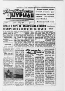 І у у ; _ _ _ ; l ____ „___ ~ ' Пролетарии всех стран, соединяйтесьЛ аишмнишпШітіітіітиіпшжтпнітптижжіннипжііпітішін^ 1 Осуществление автома- § I тической стыковки двух | I искусственных спутников | I —новый космический | І салют Октябрю! | Слава советской науке! 1 ОРГАН ГЛАВКА «СЕВРЫБА» И ПАРТИЙНЫХ КОМИТЕТОВ ТРАЛОВОГО И СЕЛЬДЯНОГО ФЛОТОВ Цена 2 «оп. = ПЕРВАЯ В МИРЕ АВТОМАТИЧЕСКАЯ СТЫКОВКА КОСМИЧЕСКИХ АППАРАТ ОВ НА ОРБИТЕ С о о б щ е н и я Х А О С 30 октября 1967 года в Совет ском Союзе произведен запуск н кусствеаного спутника Земли «Космос-188» для продолжения исследования космического про- *с*грашства и отработки новых си* сте« и элементов конструкции космических аппаратов в соответ ствии с программой, объявлен ной ТАСС 16 марта 1962 года. Спутник выведен на орбиту с параметрами: — начальный период обраще нии 88,97 минуты; — максимальное расстояние от поверхности Земли (и апогее) 27в километров; / •Л ДОСРОЧНО і Экипаж транспортного рефрижератора «Серов» завершил план юбилейно го года по приемке рыбы и'грузоперевозкам. Обя зуемся до конца года до- стаШть в порт сверх пла на 3500 тонн рыбной про дукции. титан РУЗОВ, пом- гіолит ЛОГИНОВ, пред- судкома ЖЕЛЕЗОВ. Экипаж «Ижевска» при нял обязательство к 7 но ября довести заморозку разделанной рыбы до 35 тысяч центнеров, выработ ку филе — до 4500 цент неров, рыбной муки — до 6200 центнеров. МАРКОВ, БАЖАЖИН, ВАЗАГОВ, СЫСОЕВ. — минимальное расстояние от поверхности Земли (в перигее) 200 километров; — наклонение орбиты 51,68 градуса. В 12 часов 20 мннут москов ского времени впервые в мире была осуществлена автоматиче ская стыковка на орбите искус ственного спутника Земли сКос мос-18в» со спутником «Кос мос-186», запущенным 27 октяб ря 1967 года. После выхода иа орбиту ис кусственного спутника «Кос мос-188* оба спутника, оборудо ванные специальными система ми сближения и узлами стыков ки, провели ряд сложных ма невров в космическом пространст ве. Автоматически был прове ден взаимный поиск, сближе ние, причаливание и оба спут ника жестко состыковались друг с другом. Процессы поиска, сближения и стыковки прово дились с помощью специальных радиотехнических средств и счетно-решающих устройств, установленных на борту. Телевизионное изображение состыкованных аппаратов, а также ѵтелеметрическая инфор мации передавались на Землю бортовыми радиотелевизионными установками и телеметрическими системами и принимались сетью наземных пунктов. Жестко состыкованные искус ственные спутники «Космос-186» и «Космос-188» продолжают со вместный полет по орбите. По данным телеметрической инфор мации все бортовые системы и аппаратура спутников функцио нируют нормально. Советскими учеными, конст рукторами и инженерами реше на сложнейшая научно-техниче ская проблема автоматической стыковки космических аппара тов на орбите. Это открывает широкие перспективы создании на орбите больших научных кос мических станций, , способных проводить сложные и разносто ронние исследовалия космиче ского пространства и планет. Осуществление первой в исто рии автоматической стыковки двух искусственных спутников Земли на орбите — новый заме чательный успех советской на уки и техники в канун славного юбилеи 50-летия Великого Ок тября. ★ 30 октября 1967 года искусст венные спутники «Косыос-188* я «Космос-188» продолжали в те* чеяие трех часов 30 минут полет по орбите в состыко