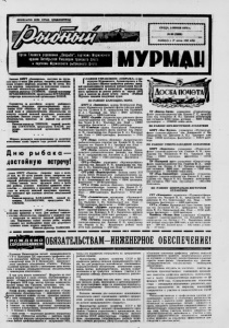 9 Е В 9 ПРОЛЕІАРИИ ВСЕХ СТРАН. СОЕДИНЯЙТЕСЬ! СРЕДА, а ИЮНЯ 1976 г. № вв (ЭЭОв) Извііется с 17 июня 1953 года Орган Главноп управління „Сіврыбіи, парткома Мурмаисчоп ірдна Октябрьской Ршляцм тралового флота и парткома Мурманского рыболовного флота МУРМД11 Экипаж БМРТ «Закавказье», заступив на трудо вую вахту в честь Дяя рыбака, завершил выполнение плана второго квартала досрочно ва 45 суток. Все :ялы моряков направлены на выполнение социали стических обязательств, прилитых ранее. — “ ШОВ, пер е н н і Капнтан-директор СУЛИ! КРАШЕНИННИКОВ, предсудкома КУРАМШШ секретарь комсомольской организации ПОПОВ. Соревнуясь за достойную встречу рыбацкого траздвика, благодаря самоотверженному труду, кнпаж ППР «Магнит» 25 мая выполнил полуго довой план н социалистические обязательства по выпуску готовой пищевой продукции, реализации продукции. Экипаж уверен в том, что выполнит обязательства, принятые на первый год десятой пятилетки. Капитан-директор ТИШКОВ, первый помощ ник СТРАТУНОВ, предсудкома БАСОВ, сек ретарь комсомольской организации МОРО ЗОВ. Широко развернув соцсоревнование за досрочное выполнение плана первого года десятой пятилетки, Д н ю р ы б а к а достойную 3 я ж ¥ кипаж БМРТ «Комета» уверенно ндет к цели. 28 мая, на 16 суток раньше срока, завершено вы- .юлненне рейсового задания по выпуску готовой пищевой рыбопродукции, производству консервов. Сейчас экипаж несет трудовую вахту в честь Дня рыбака, успешно выполняя принятые обяза тельства — завершить к празднику план семи ме сяцев по выпуску пищевой продукции, производ ству консервов при хорошем качестве выпускаемой продукции. Капитан-директор КАФАДЖИЙ, первый по мощник ЛАНОВЕНЧИК, предсудкома "ВА СИЛЬЕВ. ч 25 мая коллектив БМРТ «Капитан Демидов», выполняя принятые в честь Дни рыбака социали стические обязательства, справился с заданием пер- о полугодия по выпуску пищевой рыбной про- :ции. Наращивая темпы вылова рыбы, моряки лнимают все необходимые меры для досрочного -ершения плана второго квартала. Капитан-директор ХАМОСИН. I зЕ Г ЛАВНОЕ УПРАВЛЕНИЕ «СЕВРЫБА» и пре зидиумы Мурманского, Архангельского н Ка рельского обкомов профсоюза рабочих пище вой промышленности признали победителями бассей нового соревнования за наивысшую производится ность промысла по итогам работы за апрель 197§ года и занесли на Доску почета газеты «Рыба Мурман» экипажи следующих судов: ПО РАЙОНУ БАРЕНЦЕВА МОРЯ: . БМРТ-А «Закавказье» ордена Октябрьской Рево люции Мурманского тралового флота (капитан-дирек тор тов. Сулимов Б. К., предсудкома тов. Курамшпй И. А. ). Траловый лов. План — 3800 центнеров, фактически — 12004 центнера. БМРТ «Зодчий» Архангельского тралового флота (капитан-директор тов. Захаров В. П., предсудкома тов. Чурин К. К.). Траловый лов. План — 13865 центнеров, фактически — 13985 центнеров. РТ «Геннческ» ордена Октябрьской Революции Мурманского тралового флота (капитан тов.-Зиверс A. Ф., предсудкома тов. Переяслов В. А.). Траловый лов. План — 1800 центнеров, фактически — 3792 центнера. СРТ «Ягры» колхоза «Беломор» Архангельского рыбакколхозсоюза (капитан тов. Хренов М. И., пред судкома тов. Карпов В. И.). Траловый лов. План — 1900 центнеров, фактически — 1924 центнера. СРТ «Кехта» колхоза «Северный рыбак» Архан гельского рыбакколхозсоюза (капитан тов. Ладющ Ф. И., предсудкома тов. Анисимов А. Д.). Кошелько вый лов. План — 7300 цен