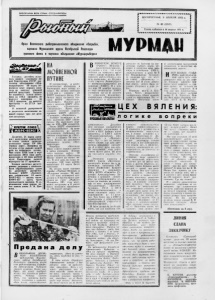 ПРОЛЕТАРИИ ВСЕХ СТРАН. СОЕДИНЯЙТЕСЬ! ВОСКРЕСЕНЬЕ , 2 АПРЕЛЯ 1978 г. № 40 (3547) Газета, издается с 14 апреля 1934 г. Орган Всесоюзного ■ рыбопромышленного объединения «Севрыба», парткома Мурманского ордена Октябрьсвді Революции траівдого флота и парткома объединения «Иурманрыбпром» МУРМАІІ Готовясь достойно встре­ тить первую годовщину но­ вой Конституции СССР, тру­ женики объединения «Мур- манрыбпром» 3 0 марта вы­ полнили план первого квар­ тала по выпуску пищевой рыбной продукции. Задание по выработке тушки выпол­ нено на 1 0 4 ,2 процента, по выпуску консервов — на 2 4 2 ,2 процента, по выпуску пресервов — на 2 7 1 ,9 про­ цента. I І экипажей рапортовали о досрочном выполнении за­ даний первых трех лет деся­ той пятилетки. $ крепче союз МОРЕ-БЕРЕГ і Ѵ Досрочно, 21 марта завер­ шил выполнение квартально­ го плана экипаж коммуни­ стического труда ТР «По­ лярные зори». Завершен на четверо суток раньше второй рейс на мойвенную путину. При плане 3 7 0 0 тонн в порт доставлено 3 9 7 8 тонн рыбо­ продукции и 5 0 тонн рыбной муки. Квартальное задание перекрыто на 17 процентов. Экипаж заключал двухсто­ ронние договоры с коллекти­ вами обрабатываемых судов на досрочную разгрузку. Экипажу БМРТ «Холмого- ры» сэкономлено 10 часов, БМ РТ -425 — восемь часов, БМ РТ -417 — шесть часов промыслового времени. В со­ ревновании смен первое ме­ сто заняла смена Л. В. Про­ нина. НА МОЙВЕННОЙ ПУТИНЕ II промысловая, и метео­ рологическая обстановка в Баренцевом море сейчас хо­ рошая. На путине работаЕОТ в эти дни в среднем 23 БМРТ тралового флота. Ста­ бильно ведут промысел эки­ пажи БМРТ «Верхояпы». «Волгобалт». Неплохо идут дела у моряков БМРТ «Под­ московье •>. «Холмогоры», «Закавказье». Вдвое пере­ крывают суточное задание экипажи БМРТ «Космос», «Гончаров», «Параллакс». Активно включился в ра­ боту коллектив ППР «Нави­ гатор». Он выполняет зада­ ние на 150 —200 процентов. Число БМРТ объединения «Мурманрыбпром» на пути­ не увеличилось до десяти. По-прежнему стабильная вы­ работка продукции на «Нарс- чи» — в среднем 70 тонн в сутки. Такого же результата добиваются моряки «Мур- мансельди». Плавбаза «Маточкин Шар» совсем недавно вышла в район промысла. Экипаж четко наладил работу. 30 марта коллектив «Маточкина Шара» вышел на первое ме­ сто. В этот день на судне за­ морожено 120 тонн мойвы, выработано 15 тысяч банок пресервов. На втором месте экипажи плавбаз «Рыбный Мѵрман» и «Полярная звезда». 30 мар­ та 113 тонн мороженой про­ дукции и 3 тысячи банок пре­ сервов на счету «Рыбного Мурмана», 105 тонн моро­ жено:', продукции и 8 тысяч банок пресервов выработано на «Полярной звезде». П р е д а н а д е л у НЕБОЛЬШОМ ДРУЖ- J J НОМ КОЛЛЕКТИВЕ радиоцентра Мурман­ ского ордена Октябрьской Революции тралового флоте имя радиооператора Серафи­ мы Афанасьевны Чудецкой хорошо известно. Более три­ дцати лет своей трудовой жизни она посвятила радио- цент^-;. Работая имен но здесь, она принесла флоту много полезного ѵ, нужного, здесь стала первоклассны.":. В ПРОШЛОМ НОМЕРЕ «Рыбного ’ Мурмана > читатели получили ин­ формацию о том, что в цех вяления на четвертом этаже нового завода меджира Мур­ манского рыбокомбината при­ шли наладчики из Мурман­ ского участка Ленинградско­ го монтажно-наладочного уп­ равления (ЛМНУ). II о том, что еще 30 декабря прошло- , го года специалисты ЛМНУ і составили акт из 11 пунктов Z по серьезным н