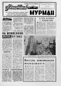ПРОЛЕТАРИИ ВСЕХ СТРАН, СОЕДИНЯЙТЕСЬ! = J ВОСКРЕСЕНЬЕ, 1 АПРЕЛЯ 1979 г. № 37 (3701) Газета издается с, 14 апреля 1934 t. Орган Всесоюзного рыбопромышленного объединения «Севрыба», парткома Мурманско го рденаОктябрьскойРеволюции тралового флота и парткомаобъединения «Мурманрыбпром» МУРМАІІ • В парткоме тралового флота ВСТРЕЧА ВЕТЕРАНОВ С ЖУРНАЛИСТАМИ ‘ т г Щ ь м ь Коллектив второго раііона Мурманского морского рыб ного порта 25 марта выпол нил план первого квартала по всем показателям. Успе шно завершено и задание марта. Портовики района во все оружии встретили мойвен- ную путину. В канун массо вого прихода судов из рай она промысла мойвы прове дено укрупнение смен. Бла годаря этому повысилась ин тенсивность обработки ко раблей и вагонов. Все три укрупненные сме ны, возглавляемые старшими стивидорами В. Е. Фещуком, Г. К. Филипповым и С. Т. Николаенко, выполняют и перевыполняют задания и социалистические обязатель ства. Высокие показатели также у укрупненных комплексных бригад, которыми руководят Ю. Н. Зарецкнй, М. И. Ма- нык, Н. И. Гринак, В. С. Се менов. В. КУСКОВ, начальник второго грузового райо на Мурманского морско го рыбного порта. * * * Экипаж плавбазы «Севе родвинск» досрочно выпол нил план и социалистические обязательства на квартал по выработке рыбной продук ции. Заключив с промысло виками группы судов Мур манского рыбакколхозсоюза договор о соревновании, кол лектив базы стремится сов местно с ними добиться но вых успехов в труде. А. САМУСЕВ, капитан. Экипаж БМРТ «Сверд ловск» досрочно выполнил план первого квартала. Под считав свои возможности, моряки решили поддержать инициативу коллектива БМРТ «В. Гаврилов»: план первого полугодия но выпус ку рыбопродукции выпол нить к 109-іі годовщине со дня рождения В. И. Ленина. От имени экипажа капи тан-директор ШТОКО ЛОВ. П РАВЛЕ ІИIE областноіі организации Союза журналистов СССР, се ктор печати, телевидения и радиовещания отдела пропа ганд!)' и агитации обкома КПСС п областной совет профессиональных союзов организовали встречу вете ранов и передовиков социа листического соревновании с журналистами областного центра. Колы и Северомор ска Встреч\- открыл председа тель правления областной журналистской организации, редактор «Полярной прав ды» II В. Беляев Он пред- c.тавил журналист ам встера - нов труда II войны. Перед собравшимися выступил за ведующий сектором печати, телевидения и радиовещании отдела пропаганды и агита ции обкома КПСС К. В. ГІолк в. Затем взяли слово капнтлп-наставппк Мурман ского тралового флота Я. А. Гуппи, дрѵгис представители трудовой гвардии рыбного Мурмаиа. Состоялся разговор о за дачах журналистов в связи с постановлением ЦК КПСС <■0 50-й годовщине первого пятнлетнего плана развитии народного хозяйства СССР». НА МОЙВЕННОЙ УСПЕХ ЗАКРЕПИМ На 3 дня раньше срока экипаж БАТ «Иван Сивко » выполнил план первого квар тала по вылову и выработке готовой рыбопродукции. Это стало возможным благодаря рациональному использова нию сложившейся промысло вой обстановки, слаженной работе всех служб, самоот верженному труду, высокой ответственности моряков за порученное дело. Среди лучших рыбмаетер Борис Порядкин, мастер д о бычи Дмитрий Степанов, ма тросы-добытчики Николай Михайлов, Валерии Чудинов, Александр Синяев, матросы- рыбообработчикн Александр Литвинов. Владимир Батуев, Александр 