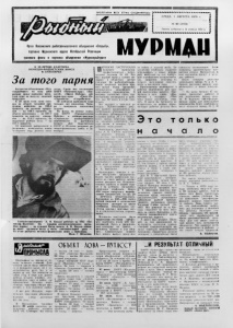 ПРОЛЕТАРИИ 8СЕХ СТРАН. СОЕДИНЯЙТЕСЬ! СРЕДА . I АВГУСТА 1979 г. № 88 (3752) Газета издается с 14 а п р е л я 1931 Орган Всесоюзного рыбопромышленного объединения «Севрыба». парткома Мурманского ордена Октябрьской Революци тралового флота и парткома объединения «Мурманрыблрам» M Y P M A U К 35 ЛЕТИЮ РАЗГРОМА НЕМЕЦКО ФАШИСТСКИХ ВОЙСК В ЗАПОЛЯРЬЕ За того парня К оллектив объединения «Мур м ан ры бпром » на сем ь дней р а н ьш е срока выполнил июль ский план по выпуску пищевой продукции. К 25 июля план семи меся цев но объему товарной про дукции выполнен на 108,6 процента, по валовой продук ции — на 109,1 процента, по объему реализации — на 107,7 процента, по выпуску консер вов — на 114.3 процента, по выработке рыбной муки — на 107,7 процента. 18 экипажей рапортовали о досрочном выполнении плана четвертого года десятой пяти летки. Среди них коллективы БМРТ «Мурмансельдь», «Пас сат-2», «Знамя Победы», сей неров-траулеров «С ою з-10», «Сортавала», «Старобельск». 36 экипажей выполнили план четырех лет пятилетки. Четы ре — завершили пятилетнее задание. На флоте по почину экипа жей БМРТ «Тридцатилетие Победы» и сейнера траулера «Сортавала» развертывается соревнование за достойную встречу Дня Конституции СССР и 35-летия разгрома не мецко-фашистских войск в За полярье. н к ' •; ‘л Газоэлектросварщ ик А. И. Басько работает на У П С «К о миссар П олу хин». Он — уд а р н и к комм унистического труда. Имя моряка — на судовой Доске почета. А . И . Б асько ус п еш но несет труд овую ва хту в честь знаменательной даты — 35-летия разгрома немецко-ф ашистских войск в Заполярье. Ф ото Г. Ш м а то ва . П ЕРВЫМИ .ГІА СТОЧКАМИ называют выпускниц профессионально - техни ческого училища № 16. Это был первый выпуск самого мо лодого в областном центре училища. На рыбообрабатыва ющий комбинат впервые при шел целый отряд грамотных специалистов консервного и коптильного производства. И впервые состоялось столь тор жественное посвящение в рабо чие, как 30 июля в клубе ком бината. Зал наряден и заполнен до отказа. Приветствовать деву шек пришли представители ад министрации училища н рыбо комбината, руководители коп тильного завода № 2 и консер вного завода, парткома, завко ма. комитета комсомола, мас тера цехов, в которых будут работать выпускницы. Заместитель директора учи лища А. П. Свиннн напутство вал девушек, передав наказ- коллектива преподавателей не останавливаться на достигну том, а продолжать учиться, ежедневно постигая секреты избранной профессии. . высоко нести честь училища, в кото ром только начинают склады ваться традиции. О традициях коллектива ры бообрабатывающего комбината, крупнейшего предприятия та кого рода в стране, рассказал и. о. генерального директора А. А. Брюханов. Одиннадцать заводов и це хов объединяет предприятие. Около тысячи работников тру дится на своих рабочих местах свыше двадцати лет. Неограни ченным спросом в нашей стра не и за рубежом пользуется продукция комбината. Около 400 видов продукции выраба тывает предприятие, из них 26 с почетным пятиугольником. Ежедневно на 4 0 0— 50 0 тысяч рублей пищевой и технической продукции выходит из цехов комбината. Неоднократно кол лектив занимал призовые мес та в социалистическом соревно вании. Вниманию выпускниц была предложена выставка продук ции комбината около 2 00 наи менований. Здесь и традпцнои-- ньіе консервы из трески, и пельмени, б