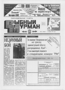 O fa j& W lU U с в я з и . ТілстиШкі ы. Информация Кашиндекс Ш о льготах на а р . 5 Еслиіыбизнесмен, тебе необходим пединститута п у т а е т Х р и с т с М о и с е е м -И il ЕЖЕНЕДЕЛЬНАЯ ГАЗЕТА Основана 14 апреля 1934 года № 14 (4562) 7 - 13 апреля 1995 года В О Р У Ю Т , Б А Т Е Н Ь К А . . . НЕЗРИМЫМ БОИ О времена, о нравы! Воруют нынче на Руси без божно. Тянут все, что под руки попа дет. Мурманский рыбный порт для ворюг - земля обе тованная. Но если раньше кража не скольких ящиков с рыбопродукцией признавалась собы тием чрезвычай ным, то теперь масштабы хищений выросли куда как... Заворуи всех мас тей в сговоре с су довладельцами и без оного пыта ются вывезти за пределы порта рыбу машинами, мехсекциями. За прошлый год, к примеру, служба охраны порта пресекла 2334 по пытки хищений материальных ценностей с подведомственной ей территории. Заместитель начальника отде ла ст. лейтенант милиции Алек сандр КАРАНДАШЕВ рассказывает: - Дежурные сводки по-прежне му пестрят сообщениями о фактах воровства. За два месяца в след ственную часть поступило 31 де ло, большинство которых касается хищений рыбопродукции. В порт через бреши в ограде стало про никать все больше лиц без опре деленных занятий. Они существенно влияют на кримино- генность обстановки. Из-за сокра щения численности личного состава (а штаты уменьшились где-то на 100 человек) мы не в состоянии обеспечить необходи мую плотность нарядов, закрыть все каналы хищений. Не хватает постов в районе южных причалов, на побережье вдоль дороги на Пе- ченгу, на Угольной базе. Фрагмент первый. Кок трауле ра “ Иткуль“ колхоза “Северная звезда “ Рудаков кустарным спосо бом заготовил в рейсе 382 кило грамма филе и 45 килограммов потрошеной трески. Судно ош вартовалось в Белокаменке, и сей “предприниматель" беспрепятст венно переправил рыбу в Мур манск. Задержан он был при ее реализации у Дома быта иАме тист “. Фрагмент второй. Докеры Jle- ванидов, Розову Рубель при раз грузке траулера “Виктор Стрельцов “ проникли в каюту матроса. Умыкнули ценные вещи и 831 доллар. Задержаны с пол - іа ичным. Возбуждено уголовное де ло. С воровством вопрос более или менее ясен. В рядах любителей легкой наживы - портовые рабо чие, промысловики, праздно ша тающиеся небритые личности. Но эта проблема имеет еще один ас пект. - Жулья от коммерции разве лось видимо-невидимо, - сетует старший следователь Первомай ского РОВД, курирующий отдел охраны порта, Михаил Кабанов. - От имени несуществующих в природе фирм разного рода прохо димцы рвутся по подложным пла тежным документам, товаротранспортным накладным получить и вывезти рыбопродук цию. А потом ищи ветра в поле... Ф р а гм е н т третий . Н едавно п о д о б ны й про хи нд ей п о д о в е р е н н о с ти м иф и ч е с ко го т о в а р и щ ества "Ф о р т у н а " хотел за п о л у ч и ть у пр ед п ри я ти я " К и то с " 34 тонны р ы б о п р о д у к ц и и . И т о л ь ко бди тельность с о тр уд н и ко в по сл е д не го с о р в а л а эту аф ер у . (О ко н ч а н и е на 3 -й стр .) А Н О Н С Такназывает’сблокированаяквота ' на треску администрацией области распределена. Как? - Отомкомментарийспециалиста в следующем номере П О Д П И С К А - 9 5 - 1 1 'J в ю і і 1Ы К у д а Министерство связи РФ "Роспечать" А Б О Н Е М Е Н Т н а ___ г а з е т у 5 2 8 3 2 Р Ы Б Н Ы Й м у р м а н п н а 1 9 9 5 г о д К о л л у ПВ ДОСТАВОЧНАЯ КАРТОЧКА Н О газету 5 2 8 3 2 Р Ы Б Н Ы Й м у р м а н К у д а Г 46600 руб . I ,іиі на 1995 под 7 Q 1 ^ 1О 11 1 *-* I >т.<.,7- _______ ----- .
