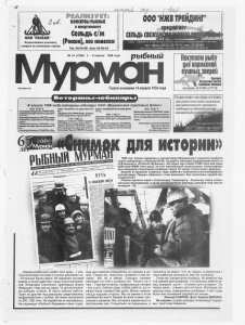 J ОАО "РЫБАК g Осуществляем доставку 1 товаров по магазинам города Р Е А Л И З У Е Т : КОНСЕРВЫ РЫБНЫЕ в ассортименте С е л ь д ь с / м (Россия), всенавески Теп. 45-04-88 Факс 45-34-43 - Г ^ U y / ООО "НЖВ ТРЕЙДИНГ Покупаемрыбу длякормления безналичныйрасчет. Бартерные поставки. тел./факс: (8-01561) 2-77-30 Еженедельник Газета основана 14 апреля 1934 года № 14 (4769) 2 - 8 апреля 1999 года рыбный f коп. »пкпа ніддпеі ПЛОДИТ n rfn « -U *« о к т » » * П е ре д о ви ки тість»’ іосар. ■ gi. tw»* 8MЯ ytS 1985 год. Среди передовых коллективов Мурманского морского рыбного порта находилась и бригада № 60. За девять месяцев (информация взята из публикации в «Рыбном Мурмане» той поры) при плане 27605 тонн она пере работала 46096 тонн груза, за счет комплексной механизации, интенсифика ции операций сэкономила рыбакам около 70 часов стояночного времени. Канули в прошлое славные годы рабочих комсомольско-молодежных коллективов. Предан забвению и сам комсомол. Как сложилась судьба ше стидесятой? Поиски привели меня к Александру Тодоровичу - бывшему члену комсо- мольско-молодежной, а ныне руководителю бригады докеров под тем же номером - 60. Осуществляет вагонныепоставки: - мукирыбнойотечественногопроизводства -муки рыбнойимпортногопроизводства -комбикормовпо просвета не видно. Что ни говори, а вернуться б свою рабочую молодость мне бы хотелось. Такая вот прозвучала исповедь. Из заметки под той давней фотографией: «Устроились ребята пе ред камерой, шутят: «Снимок для истории». Он перед вами - снимок для истории. Молодые за дорные лица, освещенные улыбками. У них тогда были все основания радоваться жизни... Леонид ПАВЛОВ, фото Бориса ВИРИНА. На снимке: (слева направо) Александр Тодоро- вич, Анатолий Шевяков. В апреле 1999 года ветераны-юбиляры ОАО «Мурманский траловый флот»: 8 5 Л Е Т « 6 0 Л Е Т Александра Федоровна КЛИМАНОВА, проработалабуфетчицей насудахфло та 27лет; АлександрФедорович НЕГОДА, прора ботавшийна судахфлота34 годасвар щиком; АлексейДмитриевич ПАНЬКИН, отхо дивший на судах флота матросом 26 лет; АлександраИвановнаТОКАРЕВА, убор щица, стажработы на судахфлота 25 лет; ГайдДаниловнаТРИФОНОВА, прорабо тала на судах флота прачкой 28лет. 7 0 Л Е Т Шариньян Галиевич ГАЛИЕВ, прорабо тал матросом насудахфлота 29лет; Герасим Иванович КИСЕЛЕВ, стажра ботыматросомна судахфлота 29 лет; АлександрПавлович МАРИН, бывший радист, проработавший насудахфлота 31 год. 8 0 Л Е Т АнастасияАнтоновнаЛУКЬЯНОВА, про работала вЖКОфлота электриком 22 года; Татьяна Александровна ЮНИКОВА, стажработы радиотелеграфистом 20 лет, кавалер ордена Отечественной войны. МарияДмитриевна ХУДЯКОВА, прора ботала бухгалтеромуправленияфлота 26лет, ветеранВеликойОтечественной воины. Президиум совета ветеранов тралового флота. Редакция газеты «Рыбный Мурман». для истории)) \ - Время разбросало ребят кого куда, - с нос тальгическими нотками в голосе рассказал он. - Отличные были парни. Из прежнего состава рядом со мной работают лишь Анатолий Шевя ков, Владимир Смоляной, крановщик Борис Файрушин. Нам уже за сорок. Те дни вспомина ем добрым словом. В порту кипела работа. Один за другим под разгрузку швартовались рефрижераторы с рыбой. За смену выгружали по 250 - 300 тонн. На заработки не жаловались. На страницах «Рыбного Мурмана» наши трудо вые достижения освещались из номера в но мер. Теперь вы, газетчики, потеряли к нам ин терес. Мы не в обиде. Сегодня громких ре