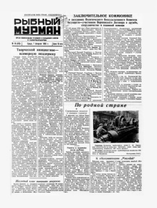 ПРОЛЕТАРИИ ВСЕХ СТРАН, СОЕДИНЯЙТЕСЬ! РЫВНЫ ОРГАН ПОЛИТОТДЕЛОВ ТРАЛОВОГО И СЕЛЬДЯНОГО ФЛОТОВ И ГЛАВМУРМАНРЫБПРОМА № 14 (410) Среда, 1 февраля 1956 г. I Цена 15 коп. Творческой инициативе- всемерную поддержку Советская страна встречает XX съезд КПСС, находясь на новом мощном подъеме. Об этом убедитель но свидетельствуют цифры Сообще ния Центрального Статистического Управления при Совете Министров СССР «Об итогах выполнения госу дарственного плана развития народ ного хозяйства СССР в 1955 году». Годовой план по производству вало вой продукции выполнен в целом по промышленности на 103 процента. В результате осуществления меро приятий, принятых ЦЕ КПСС и Со ветом Министров СССР, в истекшем году достигнут дальнейший подъем промышленности и в первую очередь тяжелой промышленности, являющейся основой развития на родного хозяйства, а также отраслей промышленности, производящих то вары народного потребления. По призыву Партии и Правитель ства рабочие и инженерно-техниче ские работники промышленности взяли на себя обязательства — на основе использования имеющихся резервов произвести значительное количество продукции сверх плана. В результате осуществления этих оол^а 1 сльсть перевыполнен годовой план по многим важнейшим видам продукции. Расширено производство товаров народного потребления. Кол хозы, машинно-тракторные станции и совхозы увеличили производство зерна и других сельскохозяйствен ных продуктов. В истекшем, 1955 году, достигнуто дальнейшее повы шение материального благосостояния н культурного уровня жизни на рода. Эти успехи — результат самоот верженного труда советских людей, развернувших борьбу за осущест вление решений январского и июль ского Пленумов ЦК КПСС, за дц- стойную встречу XX съезда партии. В ходе предсъездовского соревнова ния трудящиеся рыбного Мурмана, как и весь наш народ, добились и добиваются перевыполнения госу дарственных планов, проявляют творческую инициативу. Ярким проявлением такой ини циативы является почин коллекти ва тралового флота, моряков трауле ров «Добролюбов», «Моржовец» п среднего траулера № 4202, подняв ших знамя соревнования за досроч ное осуществление программы пер вого года шестой пятилетки. Следуя примеру промысловиков, в борьбу за новые успехи в труде включились рыбообработчики, судоремонтники, портовики. В соревновании уже одер жаны первые трудовые победы. До срочно справились с январским пла ном моряки траловото и сельдяного флотов, производственники консерв ного завода и другие коллективы. рическим документом, моряки трау лера «Некрасов» пересмотрели свои социалистические обязательства и решили выловить в нынешнем году 85 тысяч центнеров рыбы. Нет сомнения в том, что и экипажи дру гих кораблей, следуя примеру про мысловиков «Некрасова», вскроют неиспользованные резервы и воз можности и примут на себя новые повышенные обязательства. Всемерной поддержки заслужива ет также инициатива экипажа траулера «Некрасов» о полном ис пользовании мощностей рефрижера торных кораблей, о вылове 100 ты сяч центнеров рыбы на судно. На предприятиях нашей области сейчас развертывается соревнова ние по профессиям. Зачинателями его являются горняки Кировска. В соревнование включились металлур- ЗАКЛЮЧИТЕЛЬНОЕ КОММЮНИКЕ £ \ о заседаниях Политического Консультативного Комитета государств—