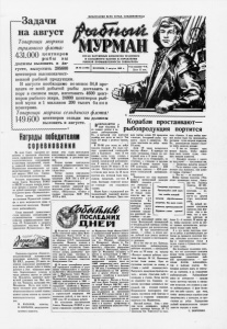 Задачи на август Товарищи моряки тралового флота! 431.000 р ыОы вы должны выловить в ав густе, выпустить 285600 центнеров высококачест венной рыбной продукции. В августе необходимо не менее 34,8 про цента от всей добытой рыбы доставить в порт в свежем виде, изготовить 4600 цент неров рыбьего жира, 24800 центнеров рыб ной муки и 1 миллион 200 тысяч банок ПРОЛЕТАРИИ ВСЕХ СТРАН, СОЕДИНЯЙТЕСЬ ! ОРГАН ПАРТИЙНЫХ КОМИТЕТОВ ТРАЛОВОГО И СЕЛЬД ЯНОГО ФЛОТОВ И УПРАВЛЕНИЯ РЫБНОЙ ПРОМЫШЛЕННОСТИ СОВНАРХОЗА № 93 (1106) ВТОРНИК, 2 августа 1960 г. консервов. Товарищи 149.600 моряки сельдяного флота! центнеров сельди вы должны выловить в августе. ☆ Наградыпобедителям соревнования На днях Совет народного хо- пажам этих судов присуждены зяйства и президиум областного переходящие вымпелы совнархоза совета профсоюзов подвели итоги и облсовпрофа и денежные пре- социалистического соревнования мни. коллективов предприятий, строек Вторые премии присуждены и экипажейпромысловых судов экипажам рефрижераторного тра- Мурманского экономического ад- улера «Некрасов» и траулера министративного района за вто- «Алма-Ата», рой квартал 1960 года. Совнар- Третьи премии присуждены хоз и облсовпроф постановили: экипажам средних рыболовных Оставить переходящее Красное траулеров 704 и 4.5У уп- зяамя Совета Министров РСФСР равления «Мурмансельдь». и ВЦСПС и выдать первую денеж- Отмечена хорошая работа во иую премию в размере 351 тыся- втором квартале экипажем про- чи рублей коллективу управления «меловых судов «Ашхабад», «Ви- сельдяного флота «Мурмансельдь». тебск». «Минусинск», «Семга» и ..... средних траулеров 703, Третьи премии присуждены ^ 3 9 и 4(54 коллективам Мурманской судовер фи и цеха медицинского жира и цозвращаются в Корабли простаивают рыбопродукция портится порт траулеры. В их трюмах свежая и со леная рыбопродукция. Но... к причалам под выгрузку рым сортом пошло 26 процентов лере «Артек». А ведь мойку трю- подойти они долго не могут. Так «свежья», бессортной рыбы ока- нов можно было бы производить, было 29 июдя с десятью трауле^ залось около 5 процентов. Это поставив судно вторым корпусом. Ра*и. ч судно простояло на рейде около Но... руководители первого участ- В 20-00 уже стоял на рейде 10 часов. ка порта развели руками: траулер «Гурзуф». J ) to судно еде- Днем 29 июля возвратился — У нас не хватает трех лало специальный «свежьевой» траулер «Поти». К причалу это метров шланга, чтобы можно рейс в Баренцево море. В его судно поставлено только на еле- было мыть трюмы судов, стоя- трюмах, когда судно снялось с дующий день в 8 часов утра. щих вторым корпусом, промысла, было 800 центнеров Гак было и со «Ставридой», со — Возьмите шланги с одного свежей, охлажденной рыбопродук- «Светом», с «Алтаем» и другими из траулеров! — предложили им. Ции. К причалу «Турзуф» смог судами. В трюме первого было — Диаметры шлангов разные! подойти только 30 июля в 12 ча- 500 центнеров, второго — 600 — Тогда экипаж судна, постав- сов дня. Выгрузка не начиналась центнеров, третьего— 450 цент- ленного под выгрузку, сам вьгмо-* в течение двух часов. За 18 часов «еров охлажденной рыбопродук- ет трюмы «Артека»! простоя лед, которым была пере- ~ Что вы — не положено! паг^-ил И Формально все суда тралового Мойку трюмов траулера «Тби- флота и промысловой разведки лиси» производил только брига дир тов. Глупила [бригада М* 39). — Остальные Но .сыпана продукция, л