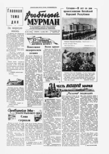Главная тема дня ПРОЛЕТАРИИ ВСЕХ СТРАН, СОЕДИНЯЙТЕСЬ! Сегодня— 11 лет со дня провозглашения Китайской Народной Республики За мирную жизнь В ящичном цехе Мурманского бондарного завода состоялся ми тинг, посвященный речи Н. С. Хрущева на XV сессии Генераль ной Ассамблеи ООН. С докладом выступил заместитель директора завода тов. Казаков. Он подробно рассказал присутствующим о за явлении главы нашего государст ва по вопросам разоружения и ос вобождения колониальных crpa.ii от чужеземного гнета. На трибуну поднимается инва лид^Отечественной войны мастер ОТК тов. Шатилин. — Все знают, — говорит он, — что такое война. И нам. людям старшего поколения. особенно близки и дороги слова Никиты ОРГАН ПАРТИЙНЫХ КОМИТЕТОВ ТРАЛОВОГО И СЕЛЬДЯНОГО ФЛОТОВ И УПРАВЛЕНИЯ РЫБНОЙ ПРОМЫШЛЕННОСТИ СОВНАРХОЗА № 120 (МЗЗ) СУББОТА, I октября 1960 г. Год издания—8-Л. Цена 15 коп. 43-головщин^ „ $ м и к е г е б к т & о / ш - ЛОСТОЙНУЮ ВСТРЕЧУ ! Пожелание Вызов принят Сергеевича о том. что мир на на- тоялся МИТИ1П’- посвященный вы- 9кипаж траулера «Шилка» на ходится сейчас на промысле. Мо ряки внимательно следят за ходом XV сессии Генеральной Ассамблеи Организации Объединенных На- На траулере «Миллерово» сое- Г°РЯЧ0’ от всей души при ветствуют и одооряют выступле- подкрепляем делами ступлению главы советской деле гации на XV сессии Ге неральной Ассамблеи ООН. Мат рос тов. Глухов отметил ог ромные усилия Н. С. Хрущева в борьбе за то, чтобы человечество жило в мире и было счастливо. Тов. Глухов предложил одобрить ние Н. С. Хрущева, Декларацию о предоставлении независимости колониальным странам и народам, заявление правительства СССР но вопросу о разоружении. Лов рыбы идет успешно. Не давно мы получили вызов на со ревнование за достойную встре- зательсгв. Г. СУНЦЕВ, рабочий ящич ного цеха. шеи планете должен быть сохра нен. Рабочие горячо поддержали выступление главы нашего пра вительства на XV сессии ООН. Коллектив ящичного цеха обязался . 1 v i i t 1 <1 j a i / u i i j/ ъ д а и т r m и д и н ^ ш и J «1 «* А " работать еще лучше, с постоян- выступление Н. С. Хрущева. Ка- чу 43_и годовщины Октяоря от кым перевыполнением своих обя- питан тов. Решетов заявил, что М^РЯК0В траулера «Лавна». Ьызов сама поездка товарища Хрущева оосудили и принимаем, на Ассамблею является знамена- ^ седьм.0^ ноября ооязуемся тельным событием. выловить 150 тонн рыоы и повы- По предложению боцмана тов. сн1ь ее ^ртность против плано- Малиаина участники митинга на °-5йпроцента, выраоотать приняли резолюцию: «Мы. про- 10 тысяч 6а,,ок ^нсервов. сэко- мысловики траулер «Миллеро во». собравшись на свой кора бельный митинг, посвященный выступлению Н. С. Хрущева на сессии Генеральной Ассамблеи ООН, выражаем свое одобрение его неутомимой борьбе за мир без колоний и войн, за всеоб- Коллектив траулера «Моздок», щее разоружение. Мы заверяем, став на трудовую вахту в честь что своими практическими делами 43-й годовщины Великого Октяб- будем бороться за осуществление ря, перед выходом в очередной этих идей мира», рейс принял обязательство пере- Матросы третьей вахты тт. Глу- выполнить рейсовое задание на хов, Батроков. Селезнев, Левин, 25 процентов. Экипаж досрочно возглавляемые третьим помощни- завершил выполнение задания ком капитана тов. Железняковым, третьего квартала и рейсового решили бороться за звание вахты обязательства. Пусть наш*скрои- коммунистического т