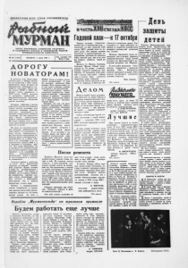 ПРОЛЕТАРИИ ВСЕХ СТРАН. СОЕДИНЯЙТЕСЬ ! [В/ЧЕСТЬ Годовойолан— х17октября ОРГАН ПАРТИЙНЫХ КОМИТЕТОВ ТРАЛОВОГО И СЕЛЬДЯНОГО ФЛОТОВ Н УПРАВЛЕНИЯ РЫБНОЙ ПРОМЫШЛЕННОСТИ СОВНАРХОЗА № 65 (1235) ЧЕТВЕРГ, 1 июня 1961 г. Гоя издания 8-й Цена 2 коп. Д О Р О Г У НОВАТОРАМ! В прошлом году число раци онализаторов в нашем бассей не, по сравнению с 1957 годом, увеличилось вдвое. И нынче на предприятиях наблюдается ак тивность новаторов. Растут ря ды членов ВО ИР и НТО. Но ваторы полны решимости к XXII съезду КПСС получить от внедрения изобретений и рационализаторских предложе ний более полутора миллионов рублей экономии. Большим событием в жизни новаторов явилось состоявшееся первое занятие постоянно дей ствующего семинара рациона лизаторов, проведенное в по мещении технического кабинета судоверфи. На нем присутство вали многие представители рыбной промышленности. Было бы очень хорошо, если в море стали практиковаться подобные занятия по радио. Но везде ли уделяется долж ное внимание рационализатор ской работе? К сожалению, не везде. Факты бюрократизма с рассмотрением предложений но ваторов, факты консерватизма с претворением их в жизнь име ются и на судоверфи, и на су доремонтных заводах №№ I, 2, в траловом и сельдяном . фло тах. Чем иным объяснишь, что в тралфлоте не получило долж ное распространение скоростное траление, а на судоверфи де сятки рационализаторских предложений лежат в папках, не рассматриваются и, конечно, не внедряются. Зачастую работа с новатора ми носит чисто формальный характер, не отвечает жизнен ным запросам. Придет человек в бюро по рационализации с хорошей идеей, там горячо ее одобрят, но не помогут рабоче му разработать чертежи, сде лать подчас непосильные для него расчеты и инженерные обоснования. Так и губится инициатива, глохнет идея. Бывают и парадоксальные случаи. Разработает и сделает сам новатор какое-либо приспо собление, внедрит его. И только походя узнают об этом в IA Л — JHBJ Экипаж траулера «Смоленск» упорно идет к намеченной цели — завершить ко дню открытия XXII съезда КПСС годовой план по до быче рыбы. Все моряки активно участвуют в предсъездовском со ревновании. Доставив из прошлого рейса полный груз, они и на этот раз решили добиться такой же победы. Матросы тт. Фирсов, Стрелков, Санталов. Шатин, Ушнин разде лывают до 16 рыбин в минуту. Хорошо трудится рыбмастер тов. Соколов. 55 процентов всей добы той с начала года рыбы экипаж сдал в свежем виде, сортность продукции выше плановой. _____________ . . Хорошая работа мастеров по до- смотрели работники бюро быче тт. Андреева и Михеева спо- ►ше? Ведь предложения то- >! ---------------------------- —------------ собствует повышению уловов. Уже справился со своим рейсовым за данием по выработке рыбной муки машинист рыбомучной установки тов. Деулин. Примеры образцового труда по казывают, как и прежде, ударники коммунистического труда третий механик тов. Краснокутский и ко тельный машинист тов. Широков. В этом рейсе коллектив «Смо ленска» соревнуется с моряками траулера «Юг». Ежедневные встречи капитанов по радио, обмен опытом способствуют успешному ведению промысла. БРИЗе. Тогда в спешке состав ляется документация. А куда же раньше.** в го или иного новатора требуют неотложного распространения. Необходимо широко развить ^ творческое содружество инже- нерно-технических работников, v моряков и рабочих, создават