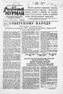 f ПРОЛЕТАРИИ ВСЕХ СТРАН, СОЕДИНЯЙТЕСЬ* £10 " ' V •** t \i IUL A t .. Г '№ - Л £ Ч ! ОРГАН ПАРТИЙНЫХ КОМИТЕТОВ ТРАЛОВОГО И СЕЛЬДЯНОГО ФЛОТОВ И УПРАВЛЕНИЯ РЫБНОЙ ПРОМЫШЛЕННОСТИ СОВНАРХОЗА № I (1171) ВТОРНИК, 3 января 1961 г. Год издания 8-# Цена 2 коп. Пусть крепнет единство партии, правительства инарода—залог всех наших побед в борьбе за комму низм. Пусть вечно живет и крепнет наше несокрушимое единство! (Из новогоднего поздравление Центрального Комитета КПСС, Президиума Верховного С<н вета СССР и Совета Министров СССР советскому народу). СОВЕТСКОМУ НАРОДУ Новогоднее поздравление Центрального Комитета КПСС, Президиума Верховного Совета СССР и Совета Министров СССР Дорогие Друзья я товарищи! Граждане Великого Союза Советских Социалистических Республик! Центральный Комитет Коммунистической партяи Советского Союза, Президиум Верховного Совета СССР и Совет Министров СССР горячо поздравляют вас с наступающим Новым годом! От всего сердца желаем вам в новом году доброго здоровья и счастья, больших, успехов .в труде и творчестве на благо нашего народа, нашей Советской Родины, во имя победы дела мира и торжества коммунизма. Оглядываясь на прожитый 1960 год, мы. советские люда, можем с гордостью сказать: наши дела ид!Т хорошо! Грандиозные планы семилетки выполняются и перевыполняются. Мы рассчитывали, что за первые два года семилетки промышленная продукция страны вырастет на 17 процентов, а она увеличилась на 23 процента. За эти годы произведено промышленной продукции примерно на 120 миллиардов рублей боль ше, чем было определено планом. Это заслуга нашего героического рабочего класса, инженеров, техников, организаторов и руководителей производства. В канун Нового года досрочно вступили в строй та кие гиганты социалистической индустрии, как самая крупная в мире Сталинградская гидростанция, круп нейшая в мире Криворожская домна, уникальный про катный стан на Магнитогорском металлургическом комбинате. Это заслуга наших неутомимых строителей и монтажников, опирающихся на все возрастающую мощь социалистической индустрии. Уверенно встречают Новый год и труженики совет ской дереввд. За последние шесть лет общий объем сельскохозяйственной продукции вырос у вас в полто ра раза. В I960 году, несмотря на неблагоприятные условия погоды, наше сельское хозяйство сделало но вый шаг вперед. Это заслуга наших колхозников я колхозниц, рабочих я работниц совхозов, специалистов сельского хозяйства, самоотверженно осуществляю щих предначертания партии и правительства по подъ ему сельского хозяйства. Страна Советов законно гордится успехами отечест венной науки и техники. За минувший год мы еще ггубже проникли в тайны атома, научились еще ус пешнее применять атомную энергию в мирных целях. Послав в космос тяжелый корабль с живыми сущест вами и вернув его на Землю, советская наука еще раз подтвердила свой неоспоримый приоритет в освоении космоса и во многих других областях знаний. Это за слуга деятелей советской науки и техники, наших за мечательных ученых, конструкторов и машинострои телей. . Успехи советской промышленности, сельского хо зяйства. научно-техяйческой мысли служат прочным фундаментам для дальнейшего неуклонного подъема благосостояния советского народа. Все. что делается в нашей стране, все это делается для человека, для его блага и счастья. Успешно р