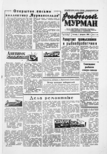 \ к ры т о е письмо колл ек т ив у „Мурманс ел ьди“ XXII съезд КПСС поставил перед нами задачу шефство над нашими отстающими судами. Та- создать изобилие пищевых продуктов. Мы, рыба* ким образом уменьшим количество отстающих ки Литовской флотилии, работаем с вами в од- судов. ном районе, интересы у нас общие, мы решаем Будет правильно, если наши механики и ка- одну задачу. В прошлом году наши флотилии не питаны-наставники временно перейдут на те ва- справились с выполнением государственного пла- ши суда, где дело обстоит плохо, и окажут по- ПРОЛЕТАРИИ ВСЕХ СТРАН, СОЕДИНЯЙТЕСЬ! на и оказались должниками перед страной. мощь. В свою очередь капитаны-наставники и Вы первыми начали вести промысел в Северной механики-наставники вашего флота пусть перей- Атлантике, и нам пришлось учиться у вас. На- дут на наши отстающие суда и наладят на них стойчивость и упорство литовских рыбаков сдела- нормальную работу. ли свое дело. В 1961 году вылов на сеть у нас Такой контакт позволит ликвидировать^ отста- оыл выше, чем в «Мурмансельди». Мы еще от- адние судов и завязать крепкую дружбу между стаем от вас по вылову на СРТ, но нет сомне- pbl6aKaMJ„ наших флотилий, ния в том, что наши рыбаки приложат все силы г „ - и догонят своих старших товарищей и по этому - Государственный план 1962 года по добыче ры- показателю ~ бы мы обязуемся выполнить к 25 декабря и до OP IAH ПАРТИЙНЫХ КОМИТЕТОВ ТРАЛОВОГО И СЕЛЬДЯНОГО ФЛОТОВ И УПРАВЛЕНИЯ РЫБНОП ПРОМЫШЛЕННОСТИ СОВНАРХОЗА конца года вылЪвить 6 тыс. центнеров рыбы. казател . Мы кровно заинтересованы в том, чтобы ваш - _ флот и наша база экспедиционного сельдяного "Ричем всю Р?бУ м“ бУдем сдавать сортностью лова работали лучше, чтобы каждое судно вы- выше плановой на 0,3 процента, полняло годовой план. Вот почему мы решили Какие ваши планы, мы не знаем, но думаем, вызвать вас на социалистическое соревнование, что вы от нас не отстанете, примете наш вызов и Но для того, чтобы это соревнование не было будем вместе соревноваться за увеличение добы- формальным, мы предлагаем: давайте организу- чи рыбы. Год издания 9-й J6 14 (1340) Четверг, 1 февраля 1962 г. Цена 2 коя. ем шефство передовых экипажей над отстающи ми. Команды наших СРТ ММ 50, 58, 3216, 3217, 3172, добившиеся наибольшего вылова сельди в прошлом году, готовы взять шефство над судами «Мурмансельдн», не выполнившими плана 1961 года, а- ваши передовые экипажи пусть возьмут По поручению собрания партийно-хозяйст венного актива: В. ГРЕБЕНИЧЕНКО , на чальник БЭСЛ, Е. СВИРИДОВ, секретарь парткома, Р. ЗАВЕЛА, председатель базо вого комитета, Р. БОЯРОВ, секретарь ко митета комсомола. Рапортуют промысловики и рыбообработчики Д невник V Промысловая обстановка в Вызывает серьезное нарека- дальних западных районах очень ние снабжение, экипажей судов, сложная. Частые штормы, сырье- Плавбаза «Иркутск» пришла в вал база неустойчивая, рыба дер- первый раз на промысел, не имея жится небольшими пятнами. В достаточного количества трало- конце января экипажи многих вых досок, запасных килей, смо траулеров по нескольку дней под- ляной пряди, чекелей. Беден ас- ряд не справлялись с суточными сортимент продуктов и промыш- заданиями. Это тревожит моря- ленных товаров, ков, под угрозу ставится судьба Второй ее приход на промысел выполнения плана и взятых обя- был еще хуже. Промснаряжение зательств. и продукты- остались на берегу. Если в прошлом 