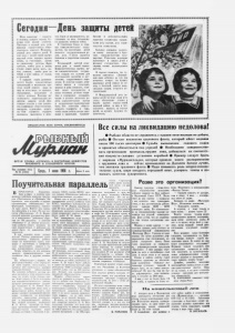 l l l i n i l l l i l l l lH I I I IH I I I I IHH I I I IH I I I t i l l l lH IH i l l l l l l l lH l l l t lH I IH I I I I I I I I I i l l t l l i lH IH I i l lH l l i l i i l l l t l i l l l l l l l l lH l iH i iH I I I IH IH lH IH I I I I I IH I I I IH t l l l l t l l l lH IH I IH im i f l t l l l l l l t lU I I I I I I I I I I K i l l l l l l l l l f l l l l l l l l l l l l i l l l l i l i l l l l l l i l l lW ' Сегодня—День защиты дет« Юное поколение — гордость и надежда каждого народа, бу дущее всей нашей планеты. Кжегодно в первый день лета мировая прогрессивная обще ственность отмечает Междуна родный день защиты детей. В этот день с новой силой ввучит могучий голос народов против войны, за счастливое, ничем не омраченное детство. Люди требуют, чтобы дети в любом уголке земли могли жить, ра сти, учиться, чтобы дети не гибли в огне войны, от голода и болезней. С каждым годом активизи руется борьба прогрессивных организаций и миллионов про стых людей земного шара за мир во всем мире, за здоровье, образование, воспитание и счастье детворы. Повсюду ор ганизуются национальные ко митеты защиты детей. Дея тельное участие в этих комите тах принимают общественники, писатели, художники, педаго ги/ Они стремятся оградить миллионы мальчиков и дево- rt. чек ,*емяи от милитаристов, по сягающих на мир, готовящих ся развязать атомную войну. В Советском Союзе и стра нах социалистического содру жества, где воспитание детей является государственным де лом, день 1 июня является большим и радостным праздни ком. Всенародной заботой окру жены дети в нашей стране. Коммунистическая партия, на ше социалистическое государ ство создали все условия для всестороннего развития и вос питания подрастающего поко ления. К услугам наших ребя тишек школы и санатории, дворцы и дома пионеров, стан ции юных натуралистов и юных техников, детгасие стади оны и спортивные площадки, парки и детские железные до роги, оздоровительные лагеря и экскурсионно-туристические базы. Вся советская общест венность стремится к тому, чтобы наши ребята росли силь ными и здоровыми, трудолю бивыми и любознательными, горячими патриотами, предан ными делу партии, делу строи тельства комч унизма. Большое внимание уделяет ся юному поколению в брат ских социалистических госу дарствах. Радостные перемены произошли в жизни детей в молодых государствах, сбро сивших оковы колониального рабства. В странах капитала, где гу манные принципы «Деклара ции прав ребенка» до сих нор остаются только на бумаге, миллионы детей гибнут от го лода и болезней, заняты непо сильным трудом, остаются не грамотными. ... . В Международный день за щиты детей честные люди всех стран объединяют усилия в борьбе против угрозы новой мировой войны, за мир и без опасность народов, за счастье детей, за лучшее будущее че ловечества. j? l lii l l! lllt lil ll l ll ! ll l lll«1 I IU I I II I I I I I I I I II I I il l1 l l l l l l l l l ! I IH II I I It | [ IU I I I I I II I I I I I I I I II I I I I I I I I I II IH I I I I I I I I II I It l l l l i l i l l l l lH l l i l l lH i i l l i l l l ...... . Все силы на ликвидацию недолова! # Рыбаки области не справились с планом пяти месяцев по добыче, рыбы # Отстает коллектив тралового флота, который ийеет недолов около 300 тысяч центнеров • Судьба выполнения годового плана и принятых обязательств под угрозой # Необходимо совершенство вать организацию промысла,орудия лова, добиваться их соответст вия мощности силовых установок кораблей # Пример следует брать с моряков «Мурмансельди», которые провели много экспериментов с орудиями лова и сейчас промышляют на Дальнем Западе лучше, чем эк