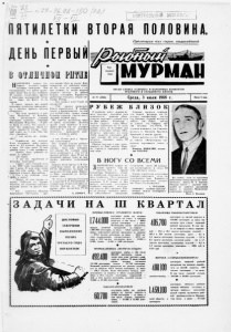 «V' с.- - Г У V ' - V г / / ПЯТИЛЕТКИ I f *> F‘ ^ Г* - М И ; / ПОЛОВИНА. ДЕНЬ ПЕРВЫЙ Пролетарии всех стран, соединяйтесь к Н ы н е ш н я я недели ооо- бшшаи: началась вторая 11 олоавдна пятилетки. Чем ознамононали .пот рубеж труже­ ники мори? Мы не раз сообщали об успехах коллективов флотов и береговых предприятий. Сегод­ ня лгать дни факта из их жязш*. С канун первого дин второй половины пятилетки ошвартовал - си у шестого причала траулер «Кедровка». Мы вели промысел в рай- он ах Медвежкн и Копытов­ ской, ™ рассказывает старший аом ощник ка питап;i Геападни Михайлович Шерстаев. — В рей­ се были ЗГ* суток. Что сказать о нем? Ное нормально. Выли, ко­ нечно, трудности: погода, слож­ ный поиск* но со воем этим ок*и- нале справился. — С чем можно вас поздра­ вить? I\ орагбшадм мы неплохо. План последнего рейса вшюл * нили на 121 процент. Доставили в порт 279 тони рыбы, 29 тонн рыбной муки, 7 тонн клшзфиска. — Каково было рейсовое за- - манне но добыче? — 232 тонны. — А как вы поработали за истеKiнее нолугодие? Судит?, сами. Годовой план у нас 8900 тонн. Завершили его еще 4 июня. И дали сверх плана уже 240 тоня рыбы. Это наш трудовой подарок Дню рыбака. Кто у вас особенно отли- • qfrjfoi в рейсе? —: Знаете, об атом трудно го­ ворить. Работали все хорошо. Впрочем, вот секретарь парторга­ низации. может. он другого мне­ ния? — Нет, - улыбается Николай Дмитриевич Емельянов, - дру­ гого мненми быть не может. Дей­ ствительно, нее работали егтлотч- по. Ну, если уж говорить о с а ­ мых лучших, то можно назвать старшего мастера по добыче Клюева, засольщика Воровского, рыбмастера Сухарева, второго ме­ ханика Рочева. * Как прошел рейс? Выли ли трудности? Рейс проше*1* нормально. Ничего героического. И вообще, знаете, я придерживаюсь на зтот счет особой точки зрения: самым большим подвигом считаю повсе­ дневный честный труд... Мы коротко рассказали шш>ь об одном коллективе. Десятки других судов тралового и сель­ дяного флотов так же успешно ВС! упиля но вторую половину пятилетки. продолжают рабо­ тать и отличном ритме. *•** А как обстоят дела у берего­ вых коллективов? В<vт Iie рвыи участок рыбного порта. В нынешнем году кол­ лективу было дано повышен - ное задание. Но главная труд­ ность заключалась в том, что не хватало рабочей силы. И все же коллектив раньше срока на пол- месяца выполнил полугодовой нлан. Первого толя бригада А. И, Коз­ ловой была занята на разгрузке РТ--1-41 «Молдавия». За смену она выгрузила 50 тонн рыбы. Выгруз­ ка была завершена на полчаса раньше срока. Не отстал от бригады Козловой и коллектив Н. П. Ряпушкиной. В первый день второй половины пя­ тилетки бригада- на W минут раньше t-рока разгрузила РТ-165 &Траверз». А. БКРКУТ. ОРГАН ГЛАВКА «СЕВРЫ 6 А» И ПАРТИЙНЫХ КОМИТЕТОВ ТРАЛОВОГО И СЕЛЬДЯНОГО ФЛОТОВ № 77 (2002) Среда, 3 июля 1968 г. Цена 2 поп. Р У Б Е Ж Б Л И З О К В прошлом рейсе моряки на­ шею траулера, подсчитав свои возможности, приняли обяза - тельство вы 11 < »л-иитI. Iодокойплан ко Дню рыбака. Коллектив с. честью одерж ал слово. Обяза - телм*тво выполнено на 1 Г» суток раньше срока. В последние дни первого полугодии экипаж «Мед- ноюрска» приложил все силы, чтобы досрочно выполнить рей- совое задание. До этого рубежа остается выловить менее 300 цен.тпер«ж. Приход траулера в порт заила* пи рока н на День рыбака. Мори ки стараются порекрьп> рейсо­ вый план. Уснешнк> трудятся коммуни- стм второй штурман тов. Ах- р«»меи\с f», каи! iф ш*