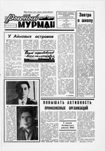 Год издзяпя 16-8 В О Т УМЕНИЯ этих двух спе­ циалистов во мно­ гом зависела побе­ да экипажа средне­ го рефрижератор­ ного траулера № 713 на кошелько­ вом промысле. И они оправдали до­ верие своего кол­ лектива. Капитан Валентин Николае­ вич Кузьмин (верхний снимок) и старший акустик Василий Алек­ сандрович Паса- лин умело органи­ зовали поиск стай сельди и их облов. Экипаж СРТ-р-713 при задании 9060 центнеров добыл в последнем рейсе 12 450 центнеров атлан т и ч е с к о й сельди. Рассказ о работе моряков этого корабля мы опубликуем в од­ ном из ближай­ ших номеров. ПОВЫШАТЬ АКТИВНОСТЬ ПРОФСОЮЗНЫХ ОРГАНИЗАЦИЙ Как ужа сообщалось в нашей газете, пятый пленум Октябрь­ ского райкома КПСС гор. Мур* иаяска обсудил вопрос «О рабо­ те базового комитета профсоюза сельдяного флота по выполне­ нию реш сгний XXIII съезда КПСС». С докладом выступил председатель базового комитета профсоюза «Мурмапсельди* тов. Бракков. XXIII съезд партии в своих решениях указал, что «должна быть усилена роль профсоюзов в решении задач развития н а ­ родного хозяйства, обеспечено более активное участие их п разработке государственных п л а ­ нов и управлении производ­ ством. Обязанность профсоюзов еще шире развивать социалисти­ ческое соревнование, улучшать воспитательную работу среди трудящихся, больше заботиться об организации труда и быта р а ­ бочих и служащих*. Под руководством партийного комитета флота и судовых п а р ­ тийное . организаций базовый профсоюзный комитет «Мурмаи- сельди» и судовые комитеты про­ водят большую работу но пре­ творению в жизнь решений пар­ тийного съезда. Особенно это от­ носится к организации и руко­ водству социалистическим сорев­ нованием. ш в в в п в я ш в в н в ш V пленум Октябрьского райкома КПСС Коллектив сельдяного флота выступил в 1968 году инициато­ ром соревнования в области аа достойную встрочу 100-лотия со дня рождении Б. И. Ленина и обязался пятилетний нлан завер­ шить к 7 ноября 1970 года. Слово у пето но расходится с делом. Несмотря на очень тяжелую об­ становку, которая сложилась в Норвежском море, коллектив су ­ мел па 40 суток раньше срока выполнить нлан девяти месяцев по вылову рыбы. Сверх задания ос добыто 203 тысячи центнеров. Звание ударника коммунисти­ ческого труда присвоено 897 по- родоиикам производства, 18 эки­ пажам и 9 командам флота. Пазовый комитет уделяет боль­ шое внимание учебе профсоюз­ ного актива. В этом году на се­ минарских занятиях, путем ин ­ дивидуального обучения повыси­ ли знания 875 председателей, членов судовых комитетов, об­ щественных инспекторов. Внимательно относятся члены базового комитета к заявлениям и жалобам грудящихся. Все к ри ­ тические замечания, высказан­ ные моряками на XI профсоюз­ ной конференций! флота, учтены, а их предложения претворены в жизнь. На флоте хорошо организова­ ны подготовка и повышение ква- (Окончание на 2-й стр.). Пролетарии всех странк соединяйтесьf / О Р Г А Н Г Л А В К А « С Е В Р Ы Б А » И П А Р Т И Й Н Ы Х к о м и т е т о в Т Р А Л О В О Г О И С Е Л Ь Д Я Н О Г О Ф Л О Т О В школу По масштабам и уровню об­ разования, по постановке про­ свещения Советский Союз з а - . нимает ведущее место в мире. Новый учебный год в школах, училищах, техникумах, вузах и других учебных заведениях на­ чинает почти каждый третий гражданин Советской страны. Расцвет народного образова­ ния а СССР обеспечивается широким разв