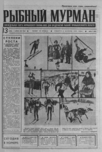 Пролетарии всех стран, соединяйтесь! РЫБНЫЙМУРМАН ЕЖЕНЕДЕЛЬНАЯ ГАЗЕТАМУРМАНСКОГООБКОМА КПС ДЛЯПРЕДПРИЯТИЙ РЫБНОЙПРОМЫШЛЕННОСТИОБЛАСТИ 1398$) 1 АПРЕЛЯ 1*83 ГОДА ф ВЫХОДИТ ПО ПЯТНИЦАМ # И З Д А Е Т С Я С 14 А П Р Е Л Я 1 9 3 4 Г О Д А ф ЦЕНА S КОП. 4 «ДЕЛА И БУДНИ «МОф «ЛЮДИ ВЫСОКОГО ф 1 АПРЕЛЯ — ДЕНЬ ф ПРАЗДНИК СЕ8ЕРА — ЛОДОГВАРДЕЙЦА» — расДОЛГА» — страница поЮМОРА И СМЕХА. Вынорепортаж наших специаль сказ нашего корреспонден та Ю. Казанцева об эки священа талантливому уче ному Н. Книповичу и одсим на суд читателей проных корр еспо нд е нтов И. Елистратова и В. Корец- паже траулера М урмансконому из первых командуизведения мурманских са го тралового флота ющих Северным флотом тириков и гамористоз ко го с ледовы х трасс (стр. 4 — 5). К. Д ушенозу (стр. 8). (сгр. 9). (стр. 11). ^ШШ11Ш111Ш11Ш1!111111ШШ1!111!Ш11Ш!111111ШШШШШ11111!11Ш11!!Ш1Ш11П1МШ1ШШП11Ш111Ш11Ш11Н111ШШ1Ш111ШП1Ш111ШШ11!ШМ1Ш!Ш1111111ШШ1Ш!!!ШШ1И1Ш111Ш1ШШШИ<1ШНШ111|? СТ УПЕНИ РОСТ А ПО МАТЕРИАЛАМ СЕССИИ ОБЛАСТНОГО СОВЕТА НАРОДНЫХ ДЕПУТАТОВ iJ llllllllllllllllltlllllllllllllilllH llillllllllllllllllllllllllllllllllllllllllllliillM lllilllllllllllllllllllllllllillllllllltllllllllllllllllin ililllllllllllllllllllllllllllilltlllillllilllllllllllllllllllllllllllltlllllllllllltlllillllllllK H i: Как мы уже сообщали, 25 марта состоялась четвертая сессия областного Соаета на родных депутатов, обсудиашая отчет о работе облисполкома ■ 1982 году. Подробно о сес сии рассказывала «Полярная ‘Е- правда». Мы приводим наибо лее яркие и убедительные цифры и факты из доклада тов. Зазулина А. П. * Основные производствен ные фонды за год возросли на 9 процентов, на их увели чение направлено боле* 500 миллионов рублей капитало- : вложений. * Объем промышленного производства в области воз рос за прошлый год на 3,6 процента, производительность труда — на 2,4 процента. Общий обьем валовой продукции сельского хозяйст ва вырос за год на 8 процен тов, а с начала пятилетки _— на 16 процентов и составляет сейчас 81,4 миллиона рублей. В области получено за год бо- 15 тысяч тонн мяса ско та и птицы, почти 48 тысяч тонн молока, 214 миллионов яиц. Это больше, чем в 1981 году, соответственно ка 24, 3,3 и 2,4 процента. * В области продолжалось развитие существующих и соз дание новых подсобных хо зяйств предприятий. За год они произвели 3 тысячи тонн мяса, 9 тысяч тонн молока. * Коллективы рыбопере рабатывающих предприятий за счет рационального использо вания рыбы-сырца увеличили в прошлом году выпуск пище вой продукции более чем на 30 тысяч тонн и выработали сверх плана почти 7 миллио нов банок консервов. \ * Коллективы предприятий пищевой и мясо-молочной от раслей дополнительно к пла ну выработали 5,5 тысячи тонн цельномолочной продукции, 320 тонн колбасных, 1700 тонн хлебобулочных и 300 тонн макаронных и кондитерских изделий. * Денежные докоды севе рян возросли почти на 4, а среднемесячная заработная плата — более чем на 2 про цента. Увеличились выплаты и льготы населению из общест венных фондов потребления. * Товарооборот розничной торговли и общественного пи тания вырос за год на 61 мил лион и составил 1,-3 миллиарда рублей. (О к о п ц а п п е п а 2-й стр.) Праздник Севера многолик. Лиц I нем — тысячи. Лиц ра достных, упоенных победой, огорченных, обиженных, удивлен ных — словом, отмеченных всей гаммой человеческих чувств. Нет только равнодушных. Может, по>тому ■ выходные дни свыше 50 тысяч мурманчан пришли ■ Долину Уют»! Расска» о событиях, там развернувшихся, — на 11-й странице. Фотомонтаж В. КОРЕЦКОГО.