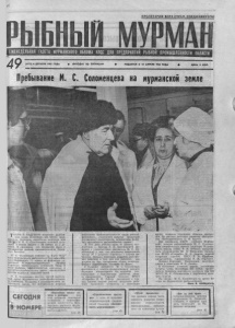 РЫБНЫЙ ПРОЛЕТАРИИ ВСЕХ СТРАН, СОЕДИНЯЙТЕСЬ? ЕЖЕНЕДЕЛЬНАЯ ГАЗЕТА МУРМАНСКОГООБКОМАКПС ДЛЯ ПРЕДПРИЯТИЙ РЫБНОЙПРОМЫШЛЕНОСТИ ОБЛАСТИ (4125) 6 ДЕКАБРЯ 198S ГОДА ф ВЫХОДИТ ПО ПЯТНИЦАМ ф ИЗДАЕТСЯ С 14 АПРЕЛЯ 1934 ГОДА + ЦЕНА 5 КОП. ТЕПЛО И РАДУШНО встретили мурман- * чане члена Политбюро ЦК КПСС, пред седателя Комитета партийного контроля при ЦК '^ПСС М. С. Соломенцева, который нахо дился в нашей области с 28 ноября по 2 де кабря. В программе его посещений были и предприятия рыбной промышленности Север ного бассейна. . М. С. Соломенцев побывал на борту боль шого морозильного рыболовного траулера «Ми хаил Вербицкий» — одного из флагманов уп равления «Севрыбпромразведка». Михаил Сергеевич интересовался условиями труда и быта рыбаков, эффективностью поисковых и научно-исследовательских работ, обеспечением флотов надежной сырьевой базой. М. С. Соломенцев посетил третий коптиль ный ■ завод Мурманского рыбообрабатывающе го комбината. Беседовал с руководителями, ра ботницами завода. Кго интересовали вопросы повышения производительности труда рыбооб работчиков, увеличения выпуска продукции улучшенного ассортимента, перспективы разви тия крупнейшего рыбокомбината страны. В этот день работал один из лучших кол лективов — бригада Г. П. Цыпленковой. Де- вушки с удовольствием рассказали М. С. Со- ломенцеву о том, что коллектив коптильного завода № 3 досрочно справился с планом пя тилетки. Михаил Сергеевич подробно расспро сил работниц о том, как они работают, как устроен их быт, организован отдых, поинтере совался заработками, планами на жизнь. С большим интересом М. С. Соломенцев знакомился с опытно-промышленным заводом белковых концентратов. Он подробно рас спрашивал о перспективах развития ' ново го предприятия. Главный технолог ВРПО «Севрыба» Е. И. Лобова рассказала о том, над какими видами рыбной продукции рабо тают труженики комбината в настоящее ............. * время, показала отдельные образцы продук ции. Ее рассказ дополнил директор объедине ния «Севтехрыбпром» С. В. Крутов. При посещении ВМРТ «Михаил Вербиц кий», заводов рыбокомбината М. С, Соломен цева сопровождали первый секретарь Мурман ского обкома КПСС В. Н. Птицын, председа тель облисполкома Ю. 3. Балакшин, началь ник ВРПО «Севрыба» М. И. Каргин, первый секретарь горкома КПСС Т. Н. Щербаев, председатель горисполкома В. И. Горячкин. Михаил Сергеевич Соломенцев возложил цветы к памятнику В. И. Ленину. В областном комитете партии состоялась встреча члена Политбюро ЦК КПСС, предсе дателя Комитета партийного контроля при ЦК КПСС М. С. Соломенцева с партийным акти вом области. На снимке: М. С. Соломенцев во время бе седы на Мурманском рыбокомбинате. Фото В. КОРЕЦКОГО. СЕГОДНЯ I НОМЕРЕ: «Партийная жизнь: от четы и выборы» — под этой рубрикой помещены материалы с партконфе ренций коммунистов Мур манского тралового флота, «Мурманрыбпрома», «Сев- рыбхолодфлота» (стр. 3) «Стреноженные трауле ры» — одна из основных корреспонденций традици онной страницы «Безопас ность мореплавания» (стр. 6) «Штаб промысла» — так названа первая часть морского дневника специ ального корреспондента еженедельника, побывав шего на мойвенной путине (стр. 7) «Бог за 500 крон» — публицистические заметки журналиста Н. Нечаевой. События, о которых идет речь, происходят на Фа рерских островах (стр. 8) Пребывание М. С. Соломенцева на мурманско