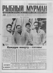 ПРОЛЕТАРИИ ВСЕХ СТРАН, СОЕДИНЯЙТЕСЬ! РЫБНЫЙ ЕЖЕНЕДЕЛЬНАЯ ГАЗЕТА МУРМАНСКОГО ОБКОМА КПС ДЛЯ ПРЕДПРИЯТИЙ РЫБНОЙ ПРОМЫШЛЕННОСТИ ОБЛАСТИ «Тайное» голосование» — рассказ о результатах одного эксперимента в пар- • тийной организации эки пажа БАТ «Генерал Рад- зиевскин» (стр. 3). «Только правду» — по лемические заметки под рубрикой «Гласность для всех» о том. что порой хуже плохой промобста- новки мешает работе ры баков ' (стр. 4). «Контора пишет...» — размышления о пробле мах перестройки управле ния флотами.. затронутых в дневпике «Вновь штили и штормы промысла» (стр. в). «Большая родня» — публицистический рассказ о семье Бредовых и род ственниках Героя Совет ского Союза Анатолия Бредова (стр. 7—8). t i н* С о * 1 - - * •г* ► г- • щ г~ * •с* * > ; - 4& V * о *■ т-* • ■* О о t 1 1 ► . f t ) t 1 t - • * с.* О ■* ( > у-*■ * ♦ ( ; »-■» * у 4 Ш о И \1 • го *► -3 с . 1 ► •* го ы •р* t-j СЕГОДНЯ S НОМЕРЕ: Люди в белых халатах К а ж д у ю м и н у т у — Около четырехсот пятидесяти медицинских работ ников, судовых врачей и фельдшеров, стоят на страже здоровья рыбаков Северного бассейна, ее - (]ущих промысел в самых отдаленных точках Ми рового океана. Это те, кто всегда окажет срочную квалифицированную помощь захворавшему в рейсе моряку, кто каждую минуту должен быть готов к исполнению своего профессионального долга. Се годня мы познакомим 9вас с четырьмя из этого большого отряда людей в белых халатах. Встретились они вместе на севрыбхолодфлотовской плавбазе <г Маточкин Шар». Ее судовым медпунктом заведует хирург Владимир Ильич Кром, опытный, знающий специалист, хирургический стаж которого более двенадцати лет. Трудовая биография вра ча началась в Забайкалье, в районе БАМа. Конеч но, теперь, в рейсах, за скальпель ему приходится браться не так часто, ведь хирург становится к опе рационному столу тогда, когда речь, бывает, идет о жизни пациента. К счастью, такие случаи редки. Однако и в последнем рейсе дважды 'доводилось Владимиру Ильичу оперировать пациентов с обо стрившимся аппендицитом: одного на своем судне, другого — весьма сложный случай — на запрыбов- ской плавбазе «Алексей Поздняков». Обе операции прошли успешно. СамыМ молодой из четверки — Дмитрий' Петро вич Германов, пять лет назад окончивший институт в Ленинграде. Однако пациентов у него бывает] по жалуй,.больше, чем у других врачей. Ведь специаль ность Германова — стоматология. И профессиональ ное умение Германова уже снискало популярность: более семисот человек за один лишь рейс садились в его кресло, а вставая, удивлялись: ведь совсем почти не чувствовали боли! Среди пациентов были и заполярные рыбаки, и труженики «Запрыбы», <г Аз- черрыбы», даже польские моряки. Терапевт и психотерапевт Николай Александрович Макаров почти десять лет связан с морем, но в Мурманске трудится всего год. И здесь он про должил интересную работу, которую раньше вел с эстонскими рыбаками, — занятия по психорегулиру ющей тренировке, которая помогает моряку смяг чить отрицательное воздействие длительного плава ния. Трудно переоценить важность этого дела, учи тывая Нагрузки, выпадающие на долю рыбаков, тем более тогда, когда они переходят на работу сокра щенными экипажами. Во всяком случае, те тридцать ГОТОВЫ моряков с Маточкина Шара», которых Николай Алек* сандрович обучил аутотренингу, очень довольны. //# конечно, в ближайшее время таких учеников у вра ча стан
