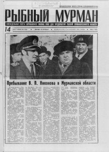 1 1/ /"Л5_J 'Т' /'"VT71 KUi 11 ГKJftlD ны лК1 j1 экзвмплзIP 1 РОЛЕТАРИИ ВСЕХ СТРАН, СОЕДИНЯЙТЕСЬГ (4194) 3 АПРЕЛЯ 1987 ГОДА ВЫХОДИТ ПО ПЯТНИЦАМ + И З Д А Е Т С Я С 14 А П Р Е Л Я 1 9 3 4 Г О Д А + ЦЕНА 5 КОП. В Пребывание В. П. Никонова Мурманской области 26 марта вечером в Мур манск прибыл секретарь ЦК КПСС В. П. Никонов. В аэропорту его встречали первый секретарь обкома партии В. Н. Птицын, пред седатель облисполкома Ю. 3. Балакшин, секрета ри, члены бюро обкома КПСС, представители об щественности. Здесь же, в аэропорту, секретарь ЦК КПСС озна комился с летающей лабо раторией, размещенной на борту самолета ИЛ-18. В беседе с сотрудниками лаборатории затрагивались t y вопросы, связанные с наи более эффективным исполь зованием новой аппаратуры и промысловых судов, тес ного взаимодействия науки с производством. В. П. Никонов посетил хлебозавод № 2, где озна комился с работой ночной смены хлебопеков. 27 марта секретарь ЦК КПСС В. П. Никонов про должал знакомство с рабо той предприятий агропро мышленного комплекса. В совхозе «Тулома» Кольско го района он посетил мо лочный комплекс на 1200 коров, беседовал с живот новодами. Затем В. П. Никонов по бывал на Мурманском теп личном комбинате имени 50-летия СССР — круп нейшем па Крайнем Севе ре нашей страны. 27 .марта Никонов В. П. по бывал в морском рыбном порту. Ом был гостем эки пажа производствеиного рефрижераториого трауле- ра «Ван-Дейк». Это судно 18 марта вернулось с про мысла. у экипажа трауле- ра-ветерана добрая трудо вая слава. В. П. Никонов поднимал ся на ходовой мостик трау лера, интересовался техни ко-экономическими данны ми корабля, аппаратурой и системой его управления, работой экипажа в Миро вом океане. На все его воп росы ответили капитан «Ван-Дейка» В. И. Черны шов п начальник тралового флота Л. В. Евграфов Затем состоялась встреча с экипажем траулера. В обстоятельной беседе с моряками секретарь ЦК КПСС интересовался усло виями их труда на промыс ле и бытом на берегу. За интересованно говорилось о необходимости укрепле ния дисциплины и порядка, организованности. устране ния всего того, что меша ет сегодня процессам пере стройки. Моряки траулера говори ли о необходимости увели чения возможностей для строительства жилья. об новления суДовой техники и оборудования, ликвидации ручного труда на промыс ле. Особо подчеркивалось, что местное машинострое ние отстает от требований дня и не может в полной мере удовлетворить труже ников моря. В. П. Никонов ответил на многочисленные вопросы и подчеркнул, что целый ряд проблем можно и нуж но решать более активно, творчески и предприимчивее использовать возможности флота и в целом рыбной промышленности в новых экономических условиях. Нужно наводить порядок* на всех уровнях хозяйство вания, находить резервы для решения производствен ных н социальных проблем. Продолжая знакомиться с предприятиями рыбной промышленности Мурман ска. В. П. Никонов побы вал на втором коптильном заводе. Здесь гостю расска зали о производственной структуре, о техническом пе ревооружении рыбокомби ната и коптильного завода, о том, какая намечена про грамма выпуска продукции, о решении социально-быто вых вопросов. Тов. Никонов В. П^ раз говаривал с рыбообработчн- цами и специалистами Н. И. Наумовой, Р. М. Бе ляевой. Н. А. С ибогатули пой и другими. Затем секретарь ЦК КПСС посетил производст венную базу производствен но-техни