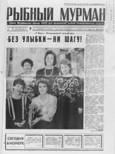 о обкома КПСС для предприятий рыбной промышленности области ПРОЛЕТАРИЯ ВСЕХ СТРАН, СОЕДИНЯЙТЕСЬ! (4279) ♦ ВЫХОДИТ ПО ПЯТНИЦАМ 39 РАЗ В ГОД ф И 3 Д А Е Т С Я С 14 А П Р Е Л Я 1 9 3 4 Г О Д А + ЦЕНА 10 КОП МАРТА 1989 ГОДА № 8 Марта — Международный женский день Ч ЕРЕЗ ПЯТЬ ДНЕЙ НАСТУПИТ ПРАЗДНИК, пахнущий мимо зами, тюльпанами, гвоздиками. День, когда прекрасная половина общества становится еще более прекрасной, ибо ничто так не красит женщину, как внимание мужчины. Однако, для кого 8 Марта — праздник, а для кого — рабочий день. Сотрудницам культбаз фло тов в праздники просто вздохнуть некогда. Это ведь их стараниями (да еще какими !) моряков встре чают с хлебом-солью, с оркест* ром , с наградами за труд. Их заслуга, когда чествование пере довиков флота проходит тепло и сердечно. Их фантазия и труд делают интересными вечера от дыха моряков . Вообще сложно даже перечислить все те добрые дела, которыми заняты работни цы культбазы. Правда, не всегда ценят их труд, по старинке счи тая, что организовать вечер от дыха или поездку в каксй -пибо город страны — дело пустяковое. Если бы так... Но они улыбаются. Работа та кая: без улыбки ни шагу! Как бы ни было трудно, а порой и горько на душе. На этом снимке вы видите представительниц трал- флотовской культбазы. Наталья Михаиловне» -F-р »-vvgynjjfc н i -сГ\ Высшей профсоюзной школы (вверху слеза) и Татьяна Н и ко лаевна Некрасова (внизу справа] — методисты. Это они встречают моряков в порту, проводят вече ра-портреты, семейные кают- компании, клубы интересных встреч. Ларису Васильевну Гусеву (вверху в центре) в траловом флоте, наверное, знают все: поч ти 15 лет она заботится о тоа / ; чтобы моряки смогли побывать в экскурсионных поездках по горо дам не только области, но и страны. Наталья Михайловна Орлова (внизу слева) —• художественный руководитель культбазы. Судовые ансамбли и выставки работ ху« дожников-моряков , снабжение экипажей музыкальной аппарату рой и сценарии вечеров отдыха — все это и множество других забот на ее плечах. Галина Григорьевна Вардугина (вверху справа) — заведующая культмассовым отделом. Помимо административной работы: планы, отчеты, руководство, — она про думывает новые формы органик зации отдыха моряков . Люди видят их работу, словно вершину айсберга: небольшая блестящая поверхность. Поду маешь, пришла с цветочками: «Дорогие моряки , поздравляем вас с приходом...», ну, на вечере представила артистов, ну, что там еще... Айсберг под водой... Улыбнитесь им , моряки , они заслужили вашу признательность! С наступающим праздником вас, милые помощницы моряков ! И. ВОЛКОВА. Фото В. КОРЕЦКОГО. iff Продолжается пред выборная кампания. «По чему я за Тншкова» — письмо избирателя. Опуб ликованы и предвыборные программы кандидатов в народные депутаты СССР (стр. 3—6) Новая рубрика «РМ» —* «Проблемы экологии: возрождение Баренцева моря». Первое выступле ние авторов на эту тему — «Кто в море хозяин?» (стр. 7) Женщина в море.'..: на яхте. Подарок читатель ницам «Рыбного Мурма- на» к 8 Марта — фото репортаж Галины Поповой «Под парусом мечты» (стр. 10) «Будни» — так оза главлена очередная радио грамма нашего спецкора из дальнего района про мысла (стр. 2) с.* О #-у* .-•л «< ^3 V-ч •г* *Г* о U ^ S3 g„ 3» - i о о td t a f ►г*