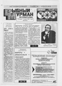 * ЫБНЫИ 1 ■ У РМ А Н in t e r n a t io n a l ! ^.44N'N4\^"44N\W>N4\VNSVSN\\4V\ n \VA>\\\\V\4V^4\4\V4‘-4'>V>:^> w . s XV4 I * В совете s | директоров I АО "Севрыба" ДЛЯ БЛАГА {ЛЮДЕЙ | | На совете директоров АО | “Севрыба" 16 июня обсужда- | лись две весьма серьезные | проблемы. | Первая - окончание | тельных работ на I больницы “Севрыбы". исполняется год со дня сдачи I ее в эксплуатацию, хотя экс- | плуатация... запрещена органа- | ми пожарного • надзора. I поскольку не проведены комп- | лексные испытания систем во- | дяного пожаротушения. | дымоудаления, дистанционно- | го управления пожарными на- | сосами, вентиляции. | автоматики лифтов. Тем не ме- | нее в больнице функционируют | 13 отделений, где лечатся 600 | человек. К пожарным опасно- I стям следует добавить неза- | вершенку вокруг больницы, а | это - длинный список. Чтобы покончить с таким | безобразием, требуется 160 миллионов рублей. Один Мур манский траловый флот такую ношу поднять не может, тем более что тяжесть в финанси ровании строительства больни- | цы легла именно на его плечи. Совет директоров принял | решение о долевом участии | I акционеров АО “Севрыба" в финансировании завершения стройки. Второй вопрос повестки дня заседания касался экспедици онного отряда аварийно-спаса- | тельных работ (ЭО АСР). Давно | уже капитаны, и особенно служ- | ба наблюдения за флотом, с | тревогой говорят о том. что фло- | ты “Севрыбы" остались со сти- | хией один на один. А ЭО АСР | занимается коммерческими операциями на мировом рынке. Семь спасательных буксиров бродят по морям и океанам, вы полняя заказы иностранных f фирм, четыре из них отданы в | тайм-чартер иностранным фрах- | тователям. А заработанная ва- | люта идет не столько на | самоокупаемость отряда, сколь- I ко на решение общих проблем “Севрыбхолодфлота". у которого эти суда находятся на балансе с 1989 года. Совет директоров решил, что ЭО АСР обязан заниматься своим делом: несение аварий но-спасательной службы и пат рулирование в основных районах промысла флота “Сев- рыбы" и в Кольском заливе. Буксировки по контрактам с за рубежными фрахтователями осуществлять только для обес печения валютной самоокупае мости. Видимо, во втором полугодии ЭО АСР будет выве ден из состава “Севрыбхолодф лота" и ими будет закреплен за АО “Севрыба", или станет само стоятельным госпредприятием. 25 июня - 1 июля 1993 года Пятница 1/3-6- 5~1 “Квэрнер Кимек”: ХОТИТЕ СТАТЬ БОГАТЫМИ? Вряд ли нужно представлять нашим читателям концерн из Норвегии “ Квэрнер Кимек А /С ": мы не раз рассказывали о его деятельности, а реклама возможно стей концерна публикуется в “ РМ". Но сегодня - особый случай. 16 июня в М ур манске прошел семинар по системе ав томатизированного ярусного лова фирмы “ Мустад", которая входит в состав кон церна “ Квэрнер Кимек". * • * Пока шла регистрация участников се минара. я попросила некоторых из них поделиться мнениями о ярусе. - У нас ярусное оборудование фирмы “ Мустад" установлено на четырех судах. - рассказывает старший мастер добычи рыбы Беломорской базы гослова А. В. Соколов. - Ярусом работать проще, чем тралом. У него немало преимуществ: ло вится только крупная рыоа. им можно ра ботать там, где нельзя тралом, то есть где каменистый грунт, подводные скалы. Хорошо зарекомендовал себя ярус на промысле клы ка ча у Южной Георгии. - У нашего НПО есть намерение за няться прибрежным рыболовством, - го ворит технический директор НПО Геосат" И. М. Нау