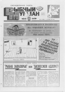 ЕЖ ЕНЕДЕЛЬНАЯ ГАЗЕТА Ы Б М Ы И ‘ “ М А Н Основана 14 апреля 1934 года № 44 (4540) 4 - 10 ноября 1994 года ПРОДОЛЖАЕТСЯ ПОДПИСКА НА “РЫБНЫЙ МУРМАН“ Не откладывайте на завтра то, что можно сделать сегодня. Наш индекс 52832. Жгучая проблема "РЫБАКЗАПОЛЯРЬЯ" или "БИЗНЕСМЕНАДЛЕРА"? Сначала процитирую статью из “Комсомольской правды“ от 4 ок тября. Она называется “Капелька дегтя в холодной воде“ , а подзаго ловок - “Итоги бархатного сезона приватизации “ . “Сегодня медики говорят о ка тастрофическом состоянии здо ровья нации, а восстанавливать здоровье сограждан и призваны города-курорты. Однако черно морские курорты России бросили на произвол судьбы, и не стоит удивляться, что богатый метал лургический комбинат предлагает строить в курортной зоне Сочи грузовой порт, а Министерство обороны наступает на детский ку рорт Анапа. Курорты приватизи руют, и, наверное, вскоре в бальнеолечебницах откроются ка- ру -ГУ^У>»У<,ЦУ;.ЯРУГ ~ ■ зино, а у моря начнется строи тельство заводов по переработке ядерного топлива. Новые русские всегда отдохнут на Багамах, а “старым" русским отпуск уже не по карману. Непонятно одно: почему бедная послевоенная Франция вложила последние деньги в государствен ную программу по освоению Ла зурного берега на Средиземном море и построила там курорты на любой вкус и для богатых, и для простых своих граждан? Да пото му, что туризм по темпам приро ста доходов уступает лишь экспорту энергоносителей44. * * * “Рыбак Заполярья“ - единст венный собственный пансионат рыбаков-северян на Черноморском побережье. В будущем году ему исполнится 50 лет. Если учесть, что за пять десятилетий пансио нат не видел капитального ремон та, то его санитарно-техническое состояние представить несложно. Особенно техническое. Но об этом чуть позже. УНИКАЛЬНАЯ ТЕРРИТОРИЯ “Рыбак Заполярья4 виден с шоссе только одноэтажным адми нистративным корпусом и нижней частью широкой лестницы. Надо подняться по ней, отдыхая на за кругленных площадках и... И по падаешь в сказочную красоту и тишину. Ее нарушают лишь свист и щебет птиц да легкое шуршание листьев деревьев под теплым вет ром. Тут и там среди зелени тра вы и кустов выглядывают персонажи сказок, выточенные из дерева. Здесь нет корпусов из стекла и бетона. Здесь коттеджи с веранда ми и мансардами. А вокруг - стройные кипарисы, сосны и уди вительные ели с длиннющими пу шистыми лапами, магнолии, пальмы - юкка и веерные, самши товые заросли. Всего не перечис лить. Известно: этот парк - на особом учете в администрации Сочи, поскольку является единст венным на Черноморском побе режье Кавказа, реликтовым. Перед ним меркнет даже знаме нитая Ривьера. И работники пан сионата не имеют права даже вырубать высохшие или сломлен ные деревья без особого на то разрешения властей. Вот в таком удивительном ме сте и стоят 35 коттеджей пансио ната. Их строили люди, видно, хорошо понимавшие, что именно надо моряку после рейса: море, солнце, тенистый парк вокруг его временного жилища и максимум удобств для семейного отдыха. В коттедже есть все: горячая и хо лодная вода, душ, кухня с плитой и холодильником, веранда со сто ликом и диванчиком. Роскошные танц- и спортплощадки, отличная столовая, медпункт довершают этот перечень. (Окончание на 14-й стр.)