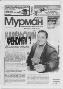 m s предлагаемпостоянныепоставки тел. 5 7 ~ 7 0~ 1 7 ТРЕСКИ ПИКШИ ПАЛТУСА М I f НАДОЛЖНОСТЬ Г РЕ КЛАМ НО ГО А ГЕН ТА Справки по телефонам: 55-32-19, 55-32-29 Kvaerner Kimek a.s Кирквнес: тел. +47 7897 7100 Мурманск: тел. 55-35-19 Основана 14 апрели 1934 года еженедельная газета Северо-Запада России № 36 (4635) 6 - 12 сентября 1996 года ж с/сие Беломорск встретил нас летней жарой, ями рябин и искренним, не показушным радушием тех, к кому мы приехали, - ра­ ботников акционерного общества «Ка­ рельский рыболовный флот». Мы знали, что генеральный директор АО Борис Гри­ горьевич Житний в отпуске, в деревне, и встречу с ним не планировали. А он взял да приехал. Таким, неофициальным, оде­ тым «по-дачному», его и засняла наш фо­ токорреспондент Инна Краева. Ну а я, конечно же, включила диктофон. Напомню: Борис Григорьевич Указом Президента России от 12 июля 1996 года перед Отечеством» II степени. VI еще: Житний - депутат законодательного со­ брания Республики Карелия. - Борис Григорьевич, пользуясь случаем, от име- - Не сомневаюсь, что проблем у вас не меньше, чем у других руководителей, а скорей всего по­ больше. Легко сказать: флот в Мурманске, перера­ ботка и социальная сфера в Беломорске, глобальные вопросы надо решать в Петрозаводс­ ке, а то и в Москве. Давайте начнем все-таки не с проблем. Похвастайтесь, что у вас хорошего. - Хорошего немало. Вот, например, наш Кедрозер- ский форелевый комплекс - один из лучших в Евро­ пе. В прошлом году во всей России было выращено полторы тысячи тонн форели, тысяча тонн из них - наша, карельская. Сегодня вокруг этого комплекса создалось 26 фер­ мерских хозяйств. А мы с помощью Комитета по рыболов- ятий республики. Из этого фонда берем часть денежек, закупаем корма и да ем их фермерам, а с нашего комплек­ са - молодь. Потом помогаем с реализацией. Хотя понача­ лу мы планировали на заводе выращивать товарную форель и, как я сказал, тысячу тонн вырастшш. Теперь бу­ дем форель перерабатывать, ведь охлажденную трудно реализовать сразу. А у^нас есть прекрасные возможности для переработки: холодильники, коптильное и кулинар­ ное 11 роизводсгва - это в Беломорске, и создан участок пе­ реработки форели на Петрозаводском рыбокомбинате. 'tS'P'4 2z КЗЙШШ-W4 к? М к й я1" Ж Ч _ ГмP f l n K НЖЭ? ^ J25f &\ ^ ■ ■: . "ч',- .. *-Л * 1А Ш l i гМ ВЙЛлЕаЛм! рыбный