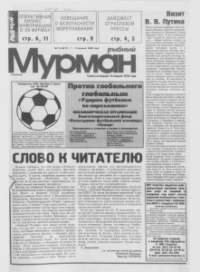tC iP H } / Z 3 Д А Й Д Ж Е С Т О Т Р А С Л Е В О Й П Р Е С С Ы с т р . 4 , 5 О П Е Р А Т И В Н А Я Б И З Н Е С - И Н Ф О Р М А Ц И Я О 3 8 Ф И Р М А Х с т р , 6 , 11 р ы б н ы й Еженедельник Газета основана 14 апреля 1934 года С О В Е Щ А Н И Е О Б Е З О П А С Н О С Т И М О Р Е П Л А В А Н И Я с т р . 2 № 1 4 (4817 ) 7 - 13 апреля 2000 года П р о т и в г л о б а л ь н о г о г л о б а л ь н ы м «Ударим футболом по наркоманам» НЕКОММЕРЧЕСКАЯ ОРГАНИЗАЦИЯ Благотворительный фонд «Воссоздание футбольной команды «Север» П ри г л аш а ем к участию в акции и спонсорству Для организаций: Для частных лиц в сберкассах: р/с 40703810541020000315 НОБФ «Воссоздание футбольной в МБ СБ РФ г. Мурманска команды «Север» к/с 30101810300000000615 р/с 40703810541020000315 БИК 044705615 в МБ СБ РФ г. Мурманска ИНН 50190403188 к/с 30101810300000000615 БИК 044705615 ИНН 50190403188 У ч р е д и т е л ь ООО «Ф у т б о л - Х (и к с )» т е л . 42-20-68 Из устава фонда: «Основной целью фонда является осуществ­ ление благотворительной деятельности, направленной на со­ действие деятельности в сфере физической культуры и массового спорта; содействие деятельности в сфере профилак­ тики и охраны здоровья граждан, а также пропаганда здорового образа жизни, улучшения морально-психологического состоя­ ния граждан»; способствование развитию детско-юношеского футбола - базы подготовки футбольной команды «Север». СЛОВОКЧИТАТЕЛЮ Должен сообщить, что этот номер « Рыб н о г о М у р м а н а » может бы т ь последним. П р и ч и н а прозаична: у редакции нет средств, чтобы изда­ вать газету. А газеты, подобные нашему ежене­ д е л ь н и к у , заведомо у бы т оч ные , т а к как иысатают не только рекламу с кроссвордами, но / общественно значимые материалы. Почему же « Ры б ны й М у р м а н » не нашел сво- ~ей экономической ниши в ры н о чны х отношени­ я х ? Всего в бывшем С С С Р под о б ны х еженедельников был о пять: в К алинин граде , М у рм а н с к е , Владивостоке, на С а х а л и н е и на Камчатке. Калинин градский « М а я к » приказал долго жи т ь в первые годы перестройки, а все три дальневосточные газеты стали многотираж­ ками, то есть «легли» иод одно из предприятий Дальневосточного бассейна. Л и ш ь года два на­ зад поднялся и окреп « Рыб а к Приморья», взяв в свои учредители не только флоты, но и коми­ тет по имуществу краевой администрации. « Р ы б н ы й М у р м а н » шел своим путем, наде­ ясь, что вот-вот и у нас на Севере п о я в и к я сила, способная объединить, направить, органи­ зовать деятельность флотов и к р у п н ы х пред­ пр и я т ий бассейна на выполнение о бщ е г о с у д а р с т в е н ны х задач. Н о иж о й силы пока нет и, очевидно, в обозримом будущем не будет. Е с ли д ал ьн ево с то чнико в объединила борьба с «экспериментами» I оскомрыболовс 1 ва и им в этой борьбе понадобилась своя u ue ia , т у нас продолжается полный раздрай. Ни «за», ни «против», а каждый за себя. З н а ч ш , nei и об ъ е к т и в ны х п р и ч ин для востребованности «Рыбног о Мурмана». А публиковать конспекты выступлений ры б ны х «генералов» или чем д р у ­ гим тешить их самолюбие не в тр ад иция х еже­ недельника. П лю с к тому очень многие сегодня не хотят выносить сор из избы, избегая довери­ тельных контактов с журналистами. Е с ть и еще одно невостребованное качество газеты. « Р ы б н ы й М у р м а н » был нужен идеоло­ гам К П С С (и очень неглупым идеологам!) для рассказа широким массам северян о делах-забо­ тах рыбаков Заполярья. Н ы н еш н и м бизнесме­ нам о т ч и ты в а т ь с я перед народом н у ж д ы нет. Ра