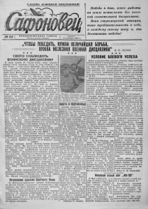 Смерть немецким оккупантам / № 63 КРАСНОФЛОТСКАЯ ГАЗЕТА Прочти и передай товарищу. С р е д а 6 октября 1943 г. Победа в бою, успех работы на земле немыслимы без высо кой сознательной дисциплины. Воин североморской авиации, выше требовательность к себе, к каждому своему шагу и , ты достигнешь победы! „ЧТОБЫ ПОБЕДИТЬ, НУЖНА ВЕЛИЧАЙШАЯ БОРЬБА, - & НУЖНА ЖЕЛЕЗНАЯ ВОЕНАЯ ДИСЦИПЛИНА" + ★ ★ СВЯТО СОБЛЮДАТЬ ВОИНСКУЮ ДИСЦИПЛИНУ ★ ★ ★ В своем приказе № 195 товарищ Сталин потребовал от всех бойцов: «...точно выпол нять приказы командиров, требования уставов и настав лений, свято блюсти дисцип лину, соблюдать организован ность и порядок». Одним из условий, обеспечивающим ус пешное наступление нашей доблестной Красной Армии, явилось вуіполнешіе этих ос новных требований приказа. Дисциплинированный воин непобедим. Он побеждает сам. Это подтверждают последние удары наших л&тчиков но аэродрому противника, когда дисциплина в полете способ ствовала скрытности и внезап ному выходу на цель. Пример высокой дисциплины подают летчики т.т; Тара сов и Гончаренко. Их долг охранять штурмовиков в по лете. Оторваться от прикры ваемого самолета, дать возмож ность противнику увлечь себя боем—значит подставить под удар охраняемый самолет, жнзнь его экипажа. Отлично сознавая это,офицеры тт. Гон чаренко и Тарасов неуклонно выполняеот приказ командира, и летчики сопровождаемых ими самолетов уверенно идут в бой. За высокую доблесть к мужество младший лейтенант т. Гончаренко награжден не- давно орденом Красного Зна мени. Однако, отдельные факты говорят о другом. Как могло случиться, что летчик т. Стар ков повредил при посадке боевую машину? Произошло это в результате недисципли нированности. Он забыл тре бования командиров, небрежно отнесся к наставлениям, не сумел в нужный момент ис пользовать тормоза и нанес этим самым значительный ущерб. Много времени потратили десятки командиров, занимаясь воспитанием сержанта т. Тка- чук. Молодой специалист не раз грубил своим начальни кам, не хотел считаться с их мнениями. Все это привело к тому, что партийная организа ция, в которой он состоял, сделала по отношению этого Еіомуниста суровый вывод. Как это ни странно встре чаются разболтанные бойцы и в среде девушеіі-краснофлот- цев. Их единицы. Кто такие тт. Бушуева, Беленкова и Легкова? Они прежде всего краснофлотцы, несяіцие на своих плечах по гоны Военно-Морского Флота— гордого и славного флота на шей Родины. Как могло про изойти, что они стали нару шителями воинской дисципли ны? Ответ здесьодин: насто ящей военной требовательнос ти к ним не предъявлялось, должному их воспитанию вни мания не уделялось. Виновны в этом неиосредст- ные начальники и, прежде все го, сержанты т. т. Зиборов и Федоренко, самиеще не отли чающиеся нужной дисциплиной. Повинны и те отдельные де вушки, которые не хотят брать примера с передовых. А з-а примером ходить дале ко не надо.Он рядом. Красноф лотец член ВКИ(б) т. Буреева своей высокой дисциплиниро ванностью и отличным несением караульной службы добилась того, что ее назначили разво дящим. Примеры высокой дисципли ны в наших частях многочис ленны. Темдосаднее отдельные факты, порочащие честьнеко торых товарищей. Долг каждо го воина заключается сейчас в том, чтобы еще раз осознать требования приказа № 195. Добиться этого нелегко, но добиться необходимо.Т